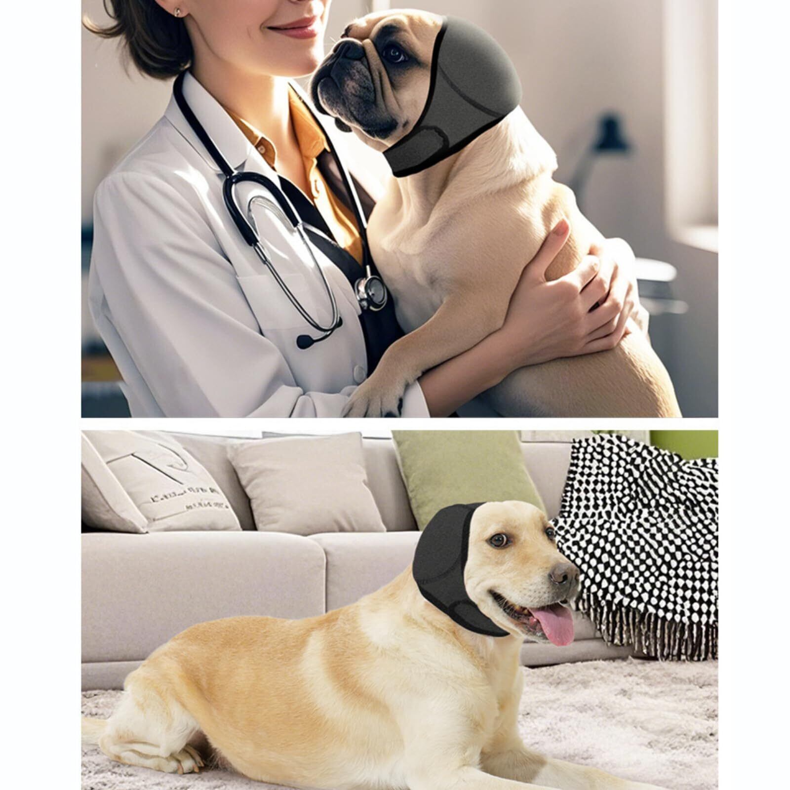 【在庫セール】犬用 スヌード 耳カバー 夏季対応 通気性メッシュ 騒音防止 不安緩和 柔らかい 洗える おしゃれ ペット耳保護 雷・花火対策 不安緩和 散歩用 快適着用 犬用の静かな耳 (S)