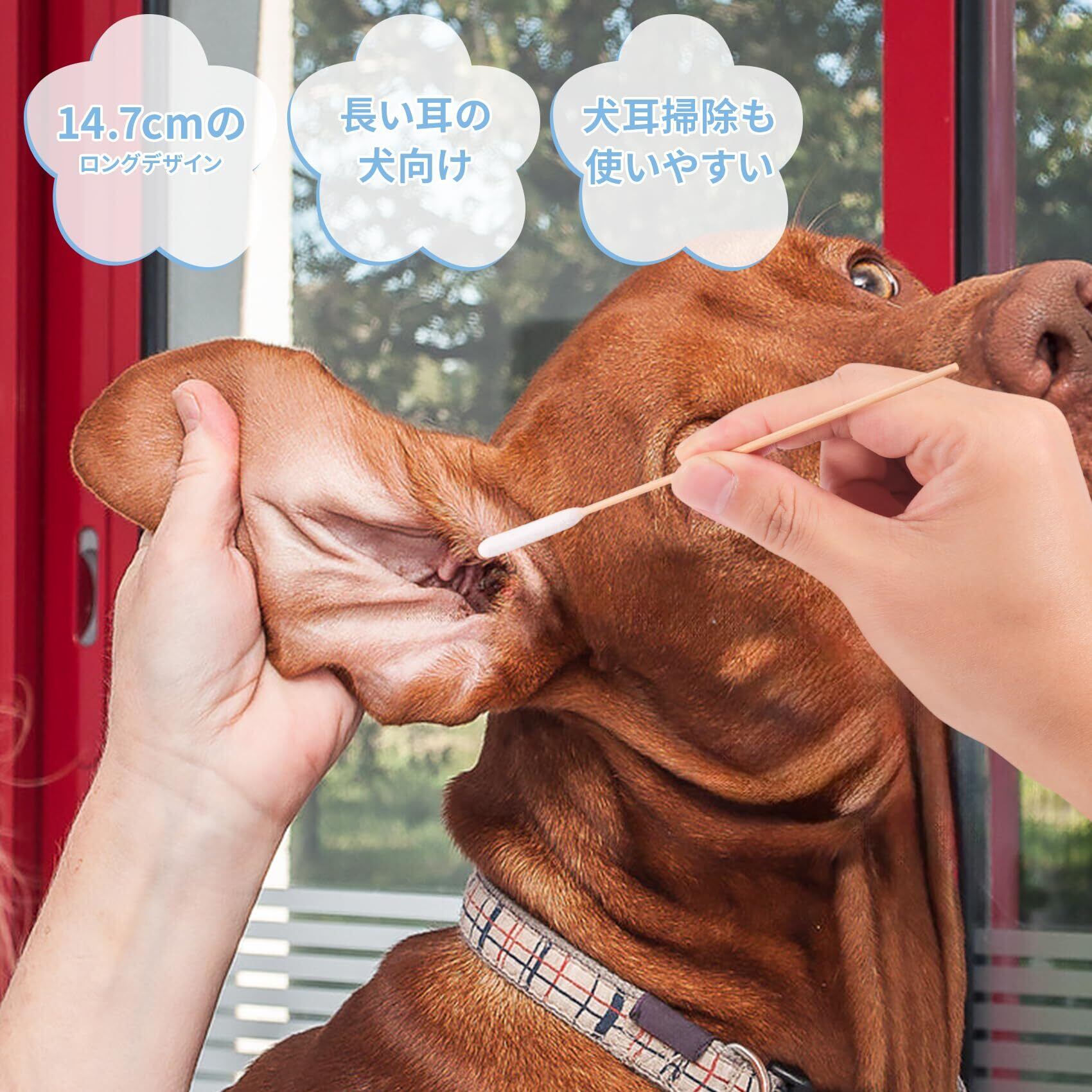 14.7cmロング柄:犬用ロング綿棒は14.7cmの長さをデザインされて、耳道の奥まで届き、奥の汚れを確実に取り除けます。犬耳掃除綿棒は深く挿入しすぎない長さで、鼓膜接触を防止できます