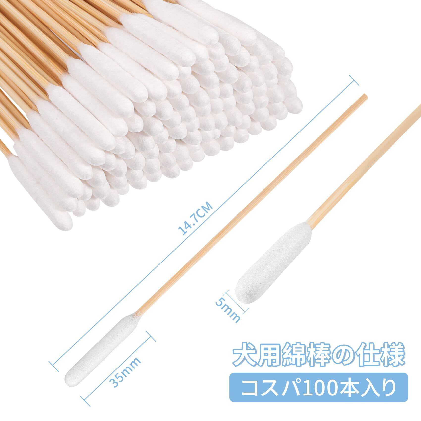 犬 綿棒 耳掃除 コットン 長さ14.7cm 100本入り 使い捨て 汚れ落とし 薬の塗布 傷の掃除 ペットケア 犬猫用