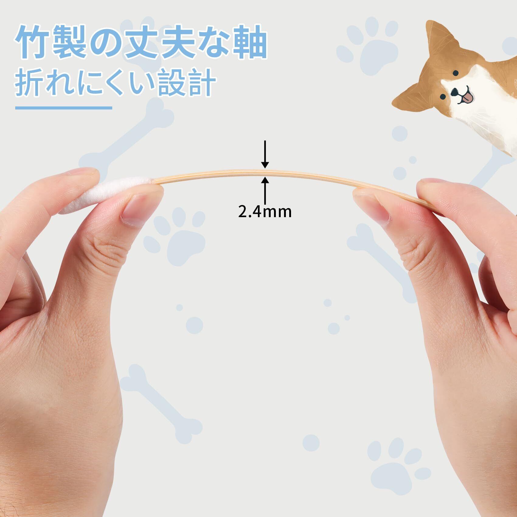 竹製&コットン製:使い捨てペット綿棒は竹素材を使用しております。肌触りの良いコットンを採用して、犬耳掃除に繰り返し使用してもほつれにくく、ペットのデリケートな耳道を傷つけません
