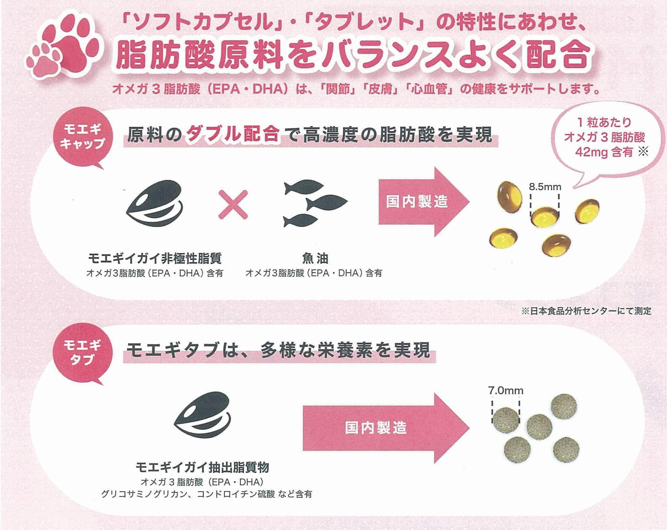 モエギイガイ抽出脂質物、イソマルトオリゴ糖、結晶セルロース、酵母エキス、チキンフレーバー、ヒドロキシプロピルセルロース、ステアリン酸Ca、二酸化ケイ素
