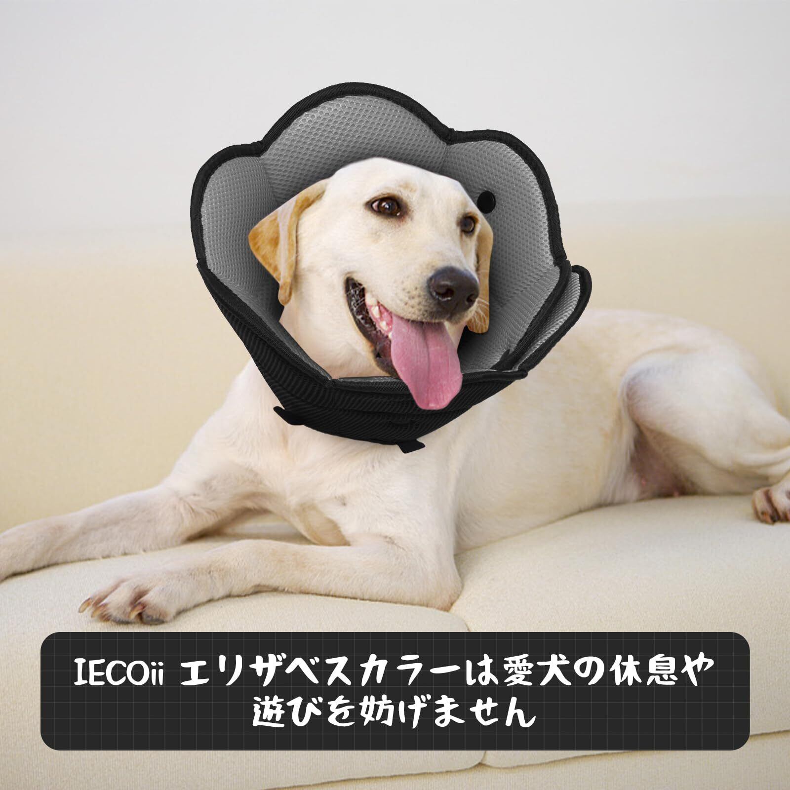【新着商品】IECOii エリザベスカラー 犬 猫 調整可能 通気性 軽量 柔らかいイヌ カラー 傷舐め防止 引っ掻き防止 傷口保護 術後ケア 中型犬 ブラック M