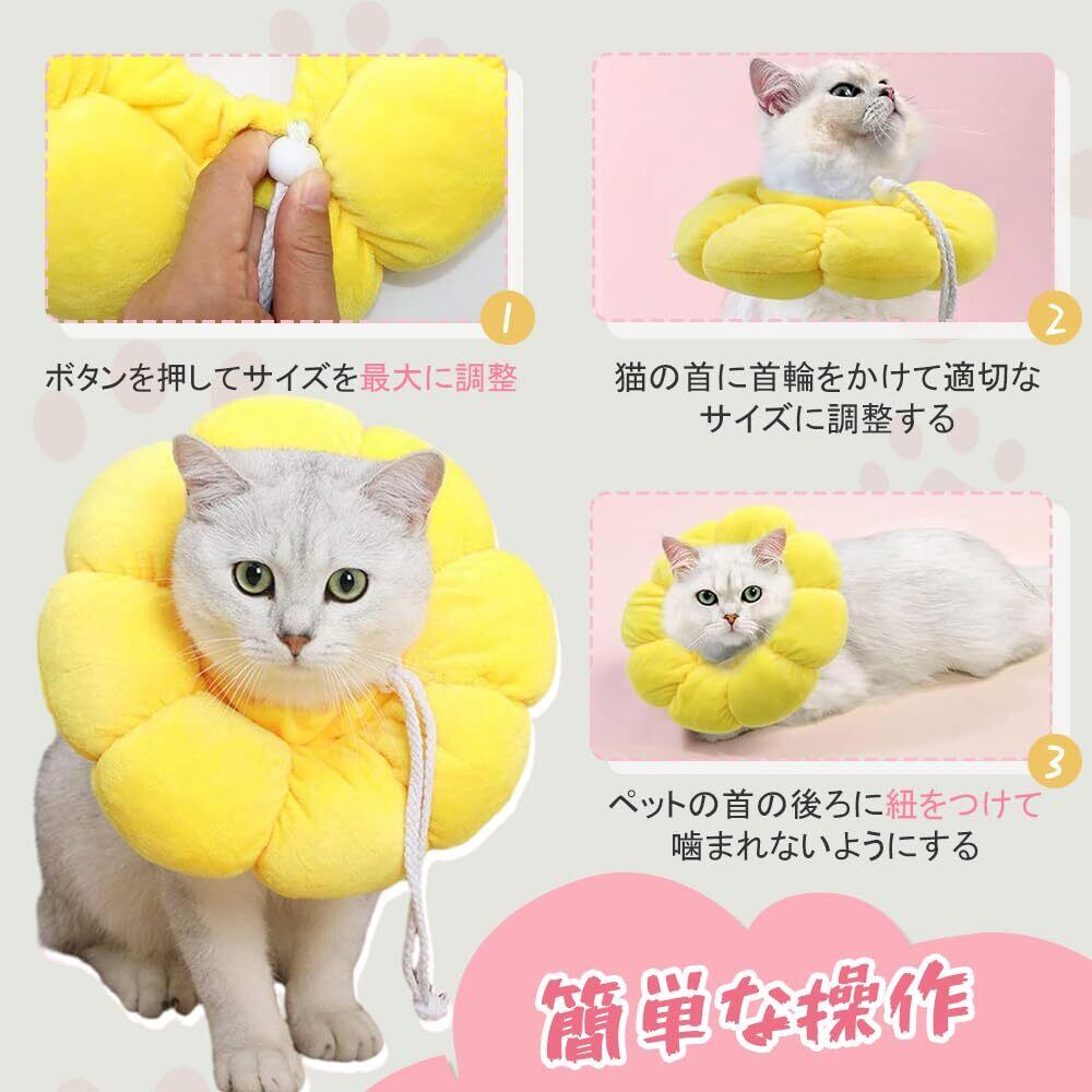 【在庫セール】猫 犬 エリザベスカラー ペット用品 引っ掻き防止 調整可能 柔らかい 布製 超軽量 通気性 かわいいひまわり型 手術後のケアに ペット保護襟 (M)