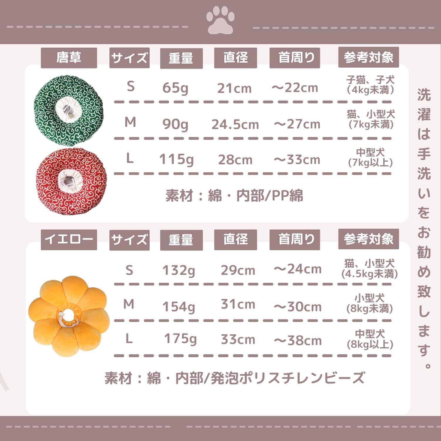 【機能性抜群&イージーケア】イエローは通気性バツグンのビーズクッション仕様。蒸れやすい季節でもサラサラ快適!唐草緑・赤は超軽量PP綿素材使用。どちらも愛犬・愛猫の体への負担を最小限に抑える工夫がいっぱい。ペットの状態や好みでチョイスできるのが嬉しいポイント!さらに、汚れたら手洗い可能なので、いつでも衛生的に保てます。ペットの肌に直接触れるものだから、清潔さにもこだわりました。毎日快適、いつでも清潔なエリザベスカラーで、愛犬・愛猫をサポートします!