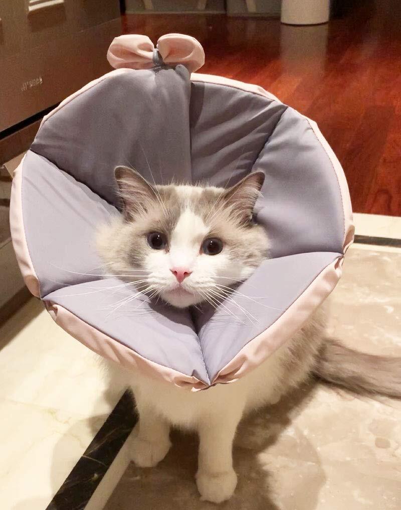 Komii エリザベスカラー 犬用 猫用 特大 軽量 布製 柔らかい 防水 耐久性 傷口保護 傷舐め防止 引っ掻き防止 調節可能 小型中型の大型犬猫に適しています (L, グレー)