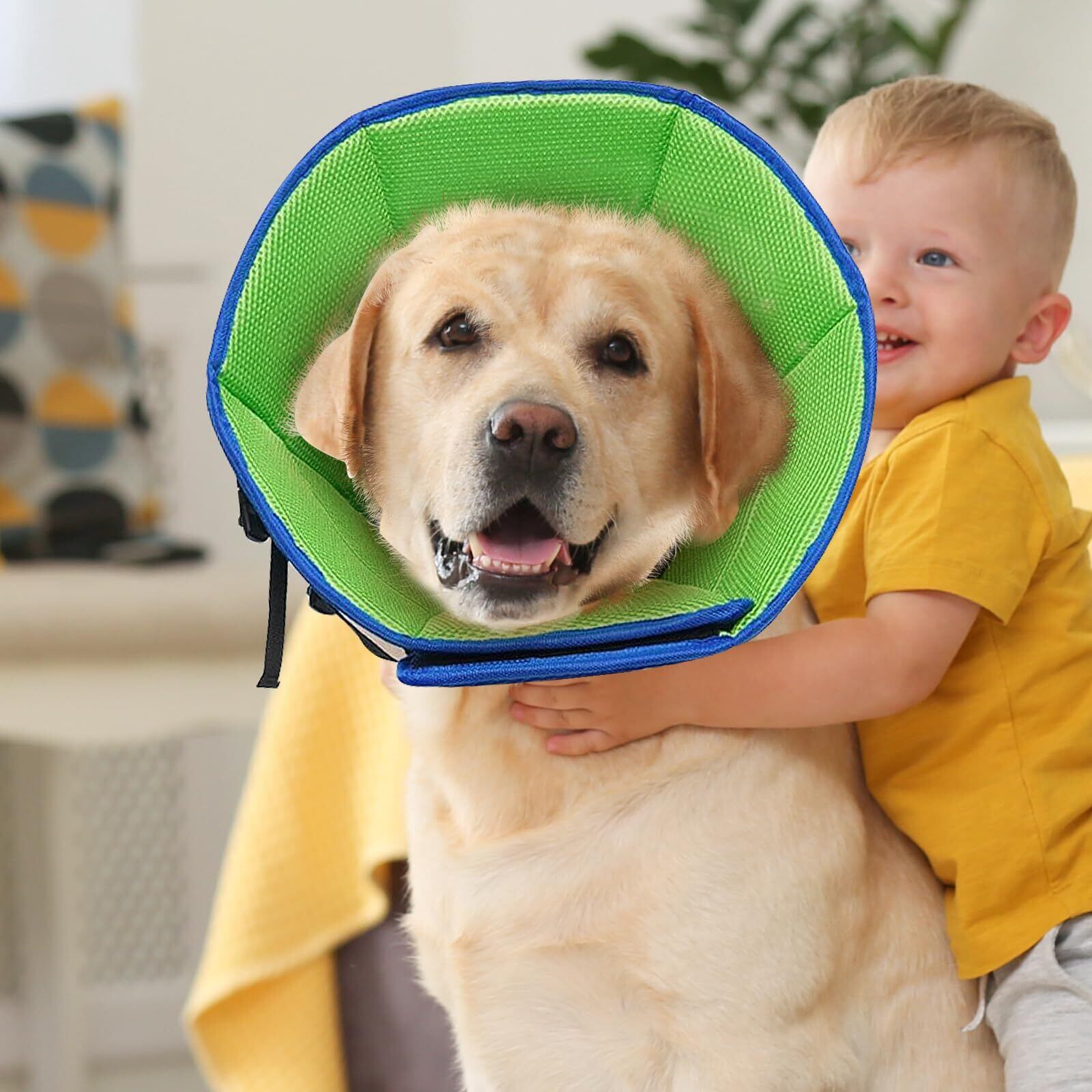 【人気商品】CMD エリザベスカラー 犬 猫 通気性 調整可能 柔らかい 軽量 傷舐め防止 引っ掻き防止 術後傷口保護 術後ケア 中大型犬用 (ブルーグリーン, L:深さ26.5 cm、首周り約40~48cmに対応)