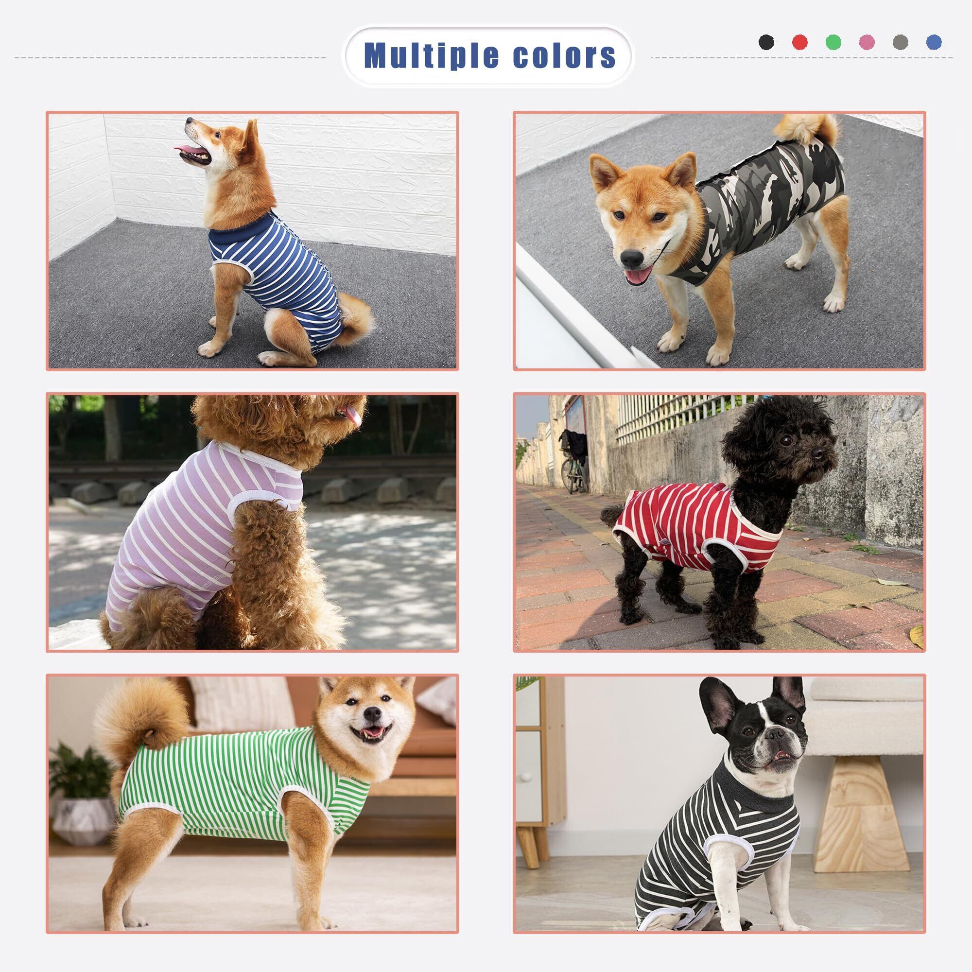 【ボタン式デザイン】:背中でとめるボタンはパッチンタイプなので、普通のボタンタイプに比べて着脱が楽です。肌にフィットします、ボタンの一部をオープンして服のサイズを調節可能です。犬自身がこの服を脱ぐのは難しいです