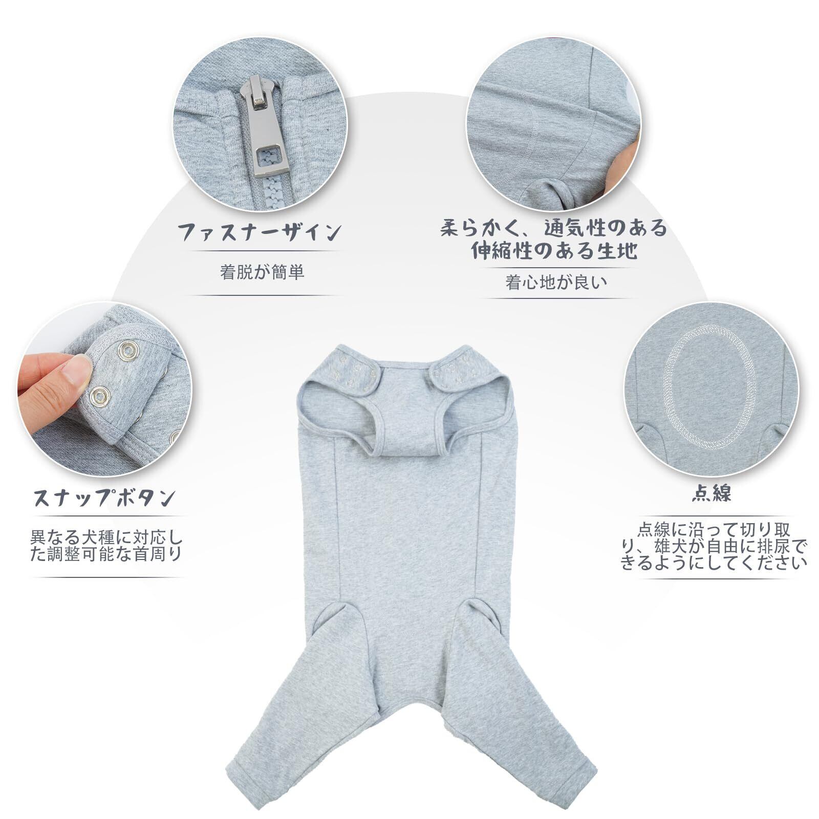 IECOii 術後服 犬 ソフト通気性 調整可能 術後ウェア 後ろ脚 伸縮性 犬 サポーター 舐め防止 皮膚病 肘用プロテクタ オス メス兼用 大型犬 グレー 2XL