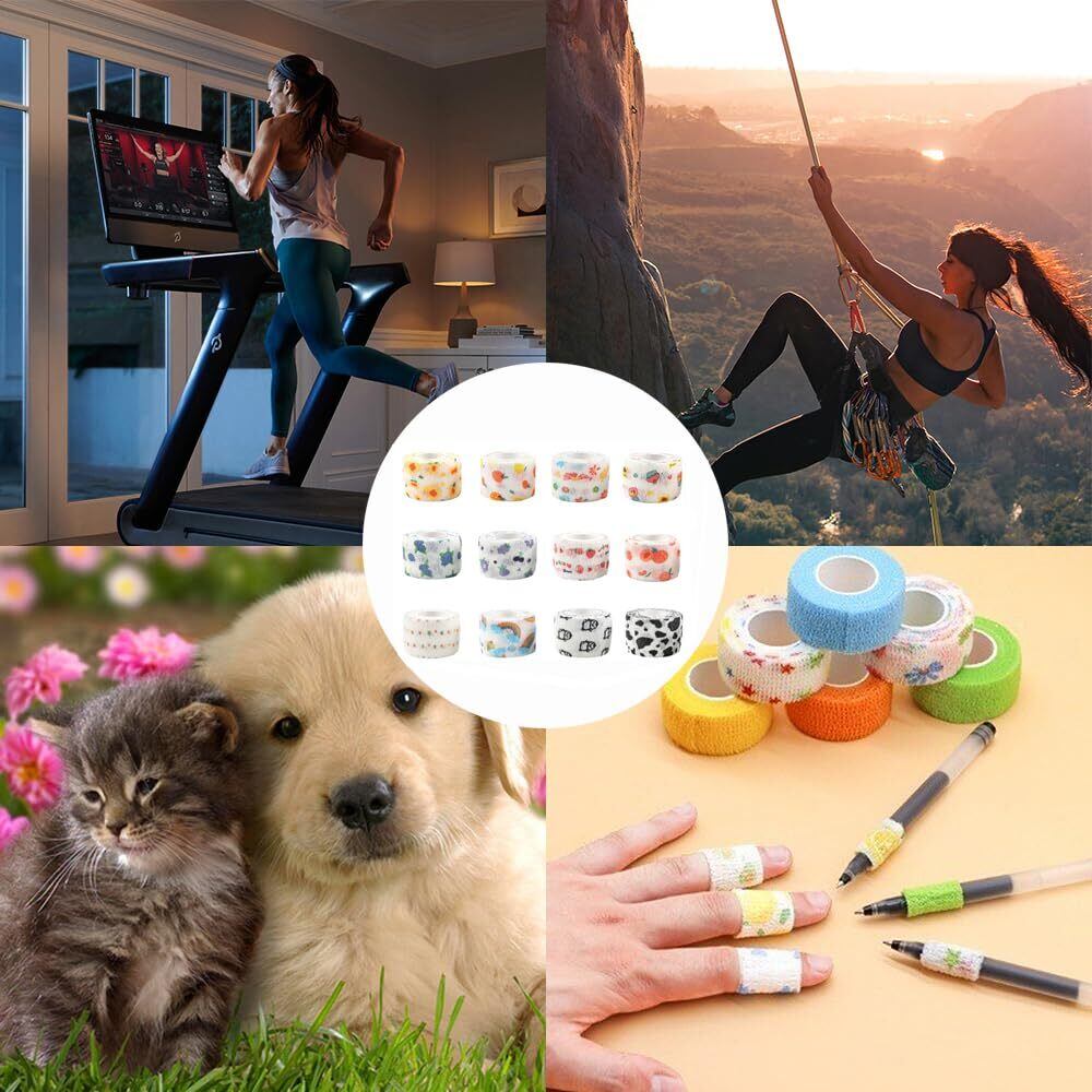 弾性包帯 ペットフレックス 2.5cm×4.5m カラー混合 テーピング 包帯 粘着包帯 伸縮包帯 自着性 自己接着性 バンテージ 不織布 ペット 犬 猫 傷舐め防止 運動保護 通気性 伸縮性 厚手タイプ 多機能 (セットE)