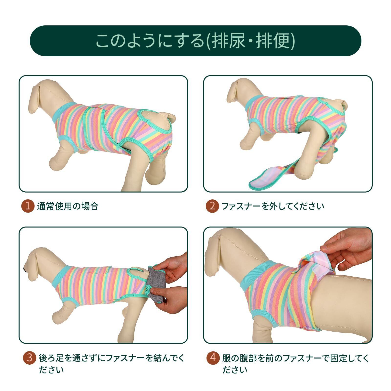 【幅広い用途】この犬用服装は細菌感染を防止、引っ掻き防止、手術後の傷口をなめたり噛んだりするのを防ぎ、犬の術後の傷口感染を避けることができる。母犬の嫌がらせ、生理用パンツとしても使用できます。避妊手術や開腹手術、術後回復や皮膚病、オス去勢、乳腺腫瘍、妊娠後の乳着。また、術後服を犬に着せて、犬の手術後の不安やうつ病を軽減し、炎症、皮膚病などの問題の予防にも役立ちます。