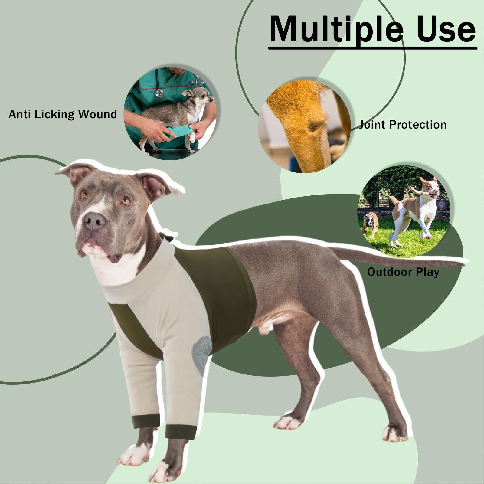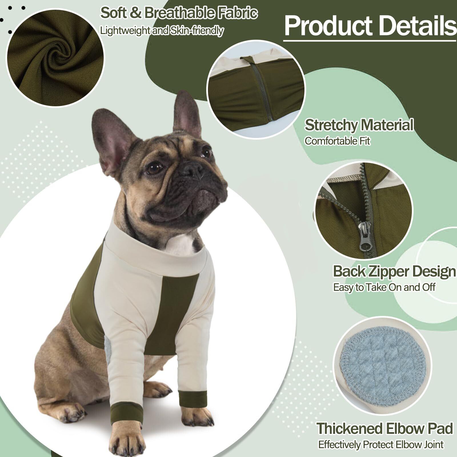 Lelepet 犬 術後服 前足用 女の子 関節 プロテクター 中型犬 介護服 通気性 伸縮性 皮膚保護 犬 サポーター 前足 舐め防止 術後服 男の子 術後ウェア 長袖 犬用術後ウェア (アーミーグリーン, M)