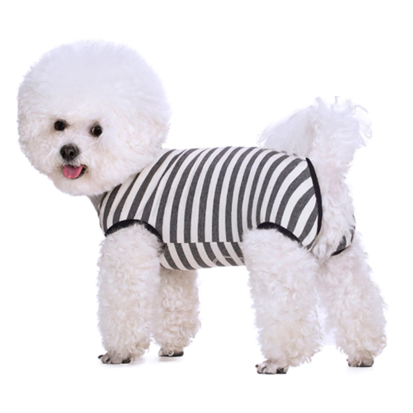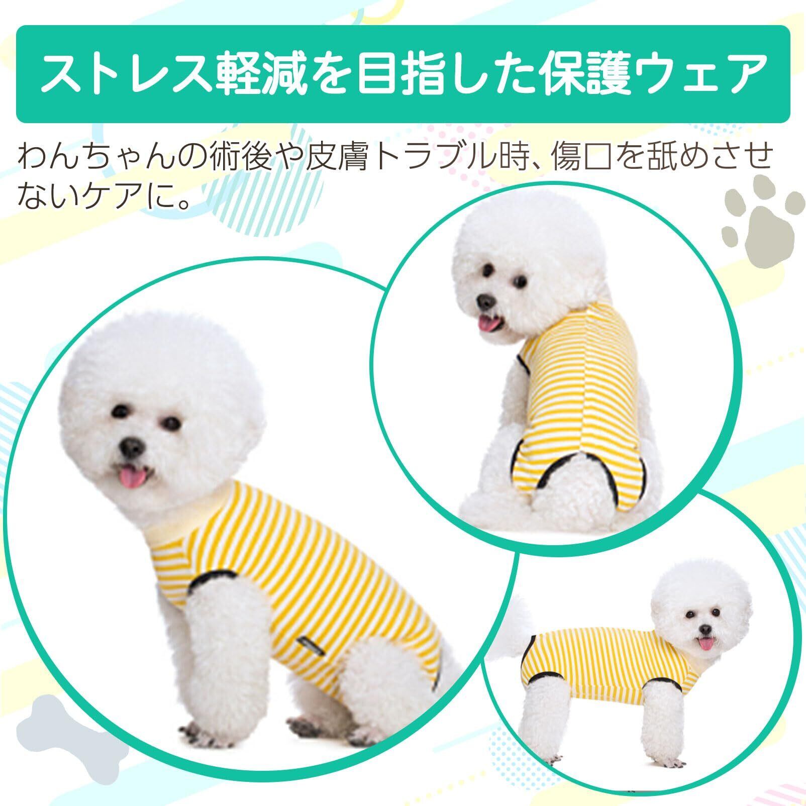 パッケージ内容:犬用術後服1点。XSからXLまで豊富なサイズ展開。材質:伸縮性ポリエステル素材他。