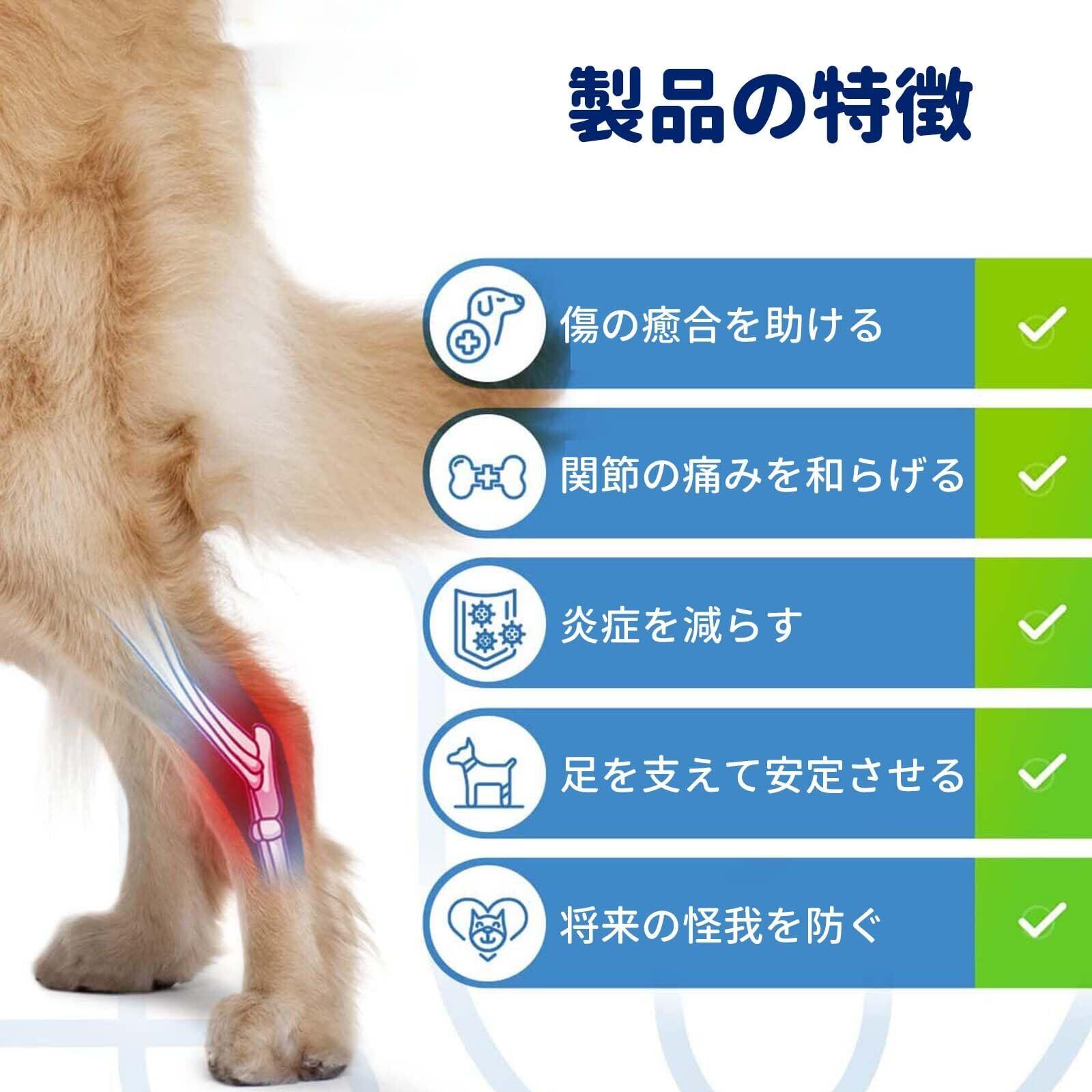 【犬用 サポーター 製品特徴】脚の怪我や術後の痛みを持つ犬、傷の回復がまだ十分でなく、その後ジャンプしたり走ったりすることで、二次的な傷害を引き起こしやすくなります、そのため、ジョイントプロテクターで傷口を包むことが必要です、手術後の犬の回復を助け、傷口の感染を防ぎ、負傷時のサポートと安定性を維持します。注意:1日2-3回膝パッドを持ち上げ、1日10-15分間傷口を呼吸させてください。