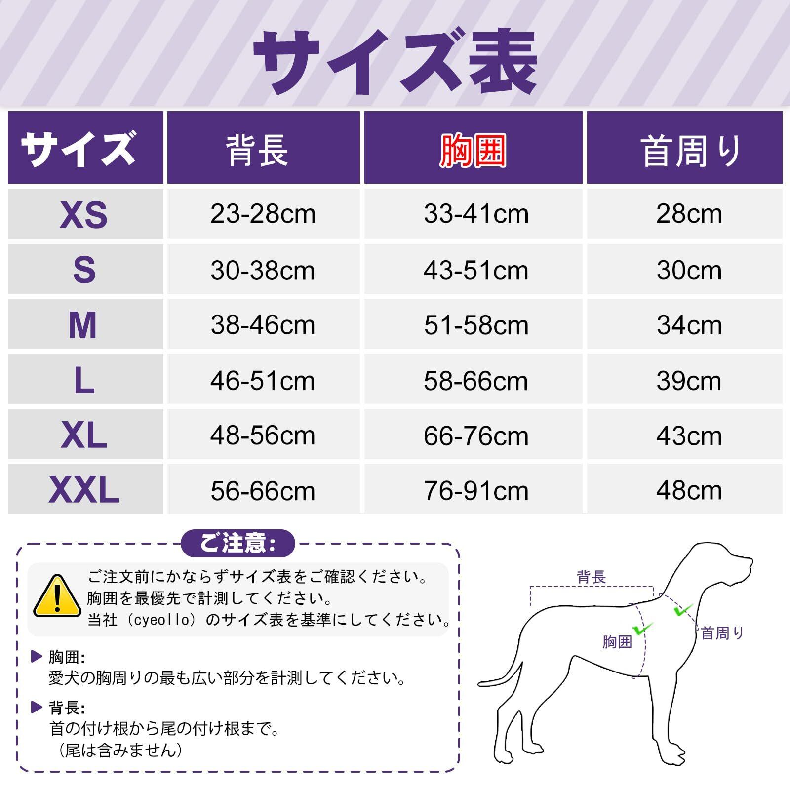 【サイズについて】: Cyeollo 犬用スクラブは、小型、中型、大型の犬や猫に適しています。犬の種類によってサイズが異なるため、購入する前に犬の胸囲と背中の長さを正確に測定することが重要です。