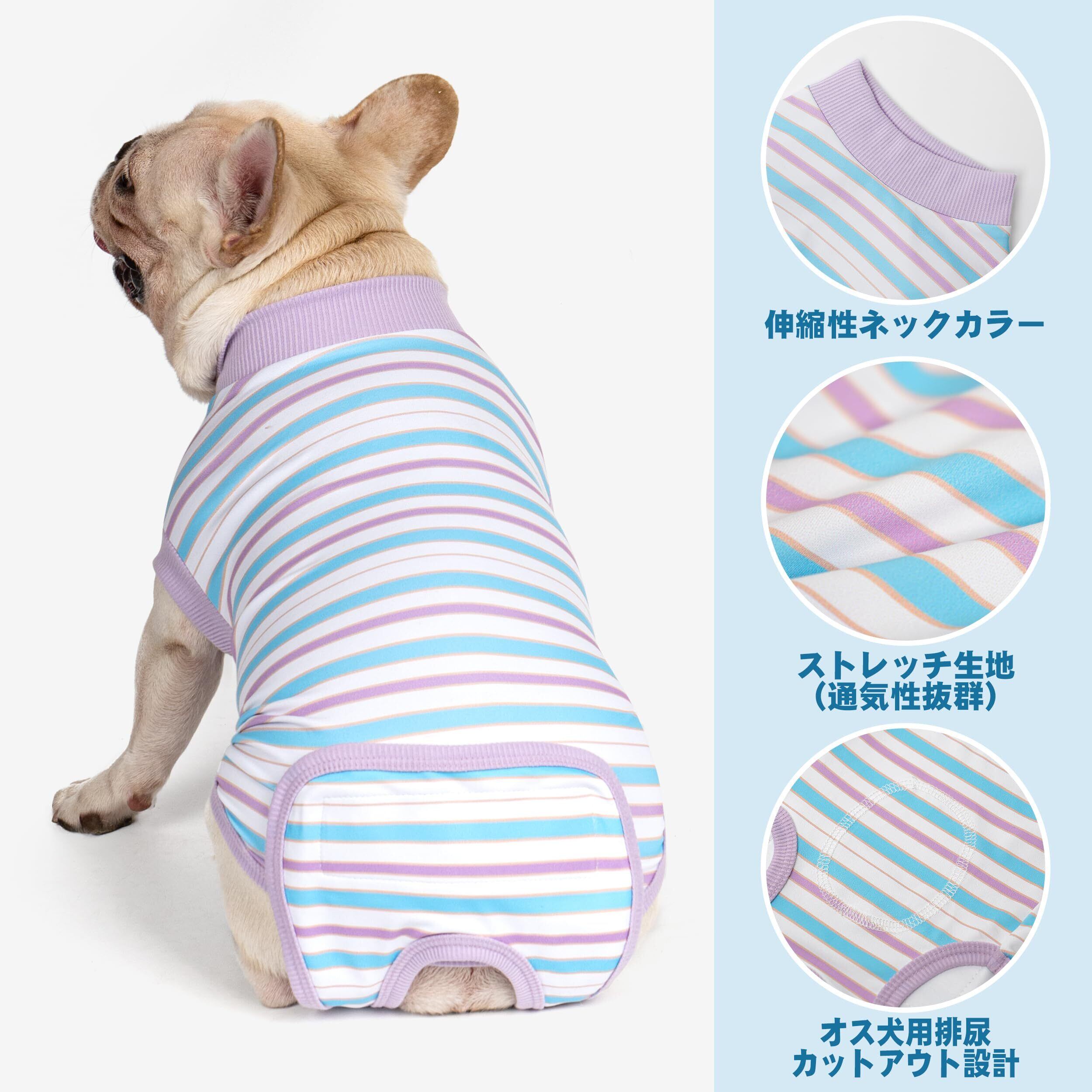 【2022最新】cyeollo 術後服 犬用 ペット術後ウェア エリザベスカラーの代わる 皮膚保護 傷舐め防止 避妊 介護服 春夏秋服 通気 オス メス兼用 男の子 女の子 兼用 小型犬 シンプルなストライプ柄 パープルとブルー S