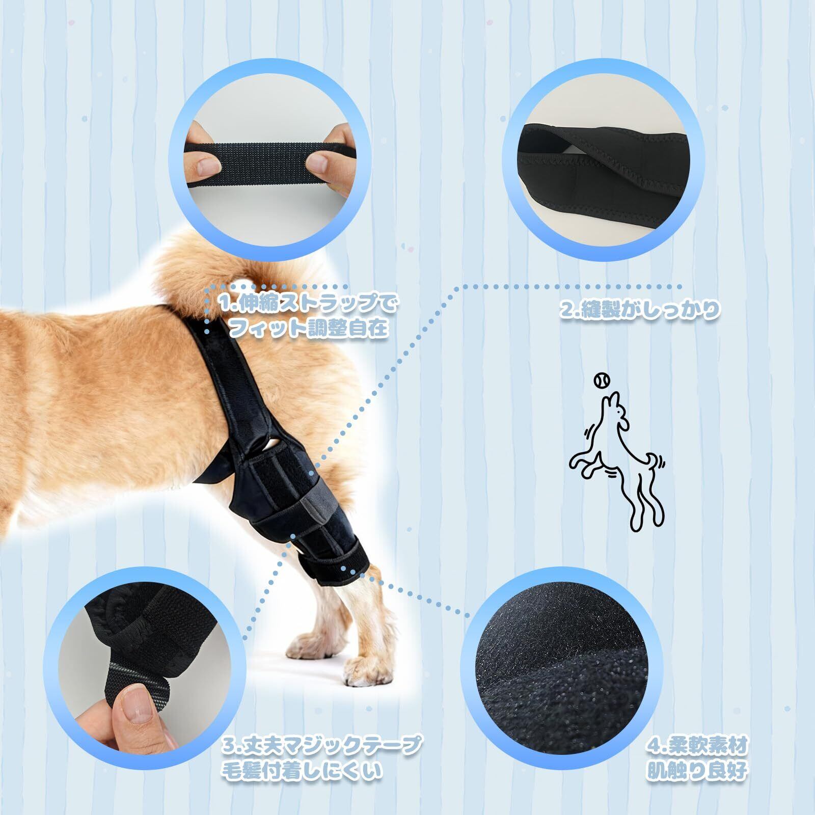 【在庫セール】犬用膝サポーター 犬リハビリ用品 犬関節プロテクター 犬 レッグガード 関節保護 前後足対応 伸縮マジックテープ搭載 サイズ調整可能 老犬介護 術後ケア 高齢犬ケア 小型犬 中型 大型犬対応 家庭用 病院用 ブラック (M)