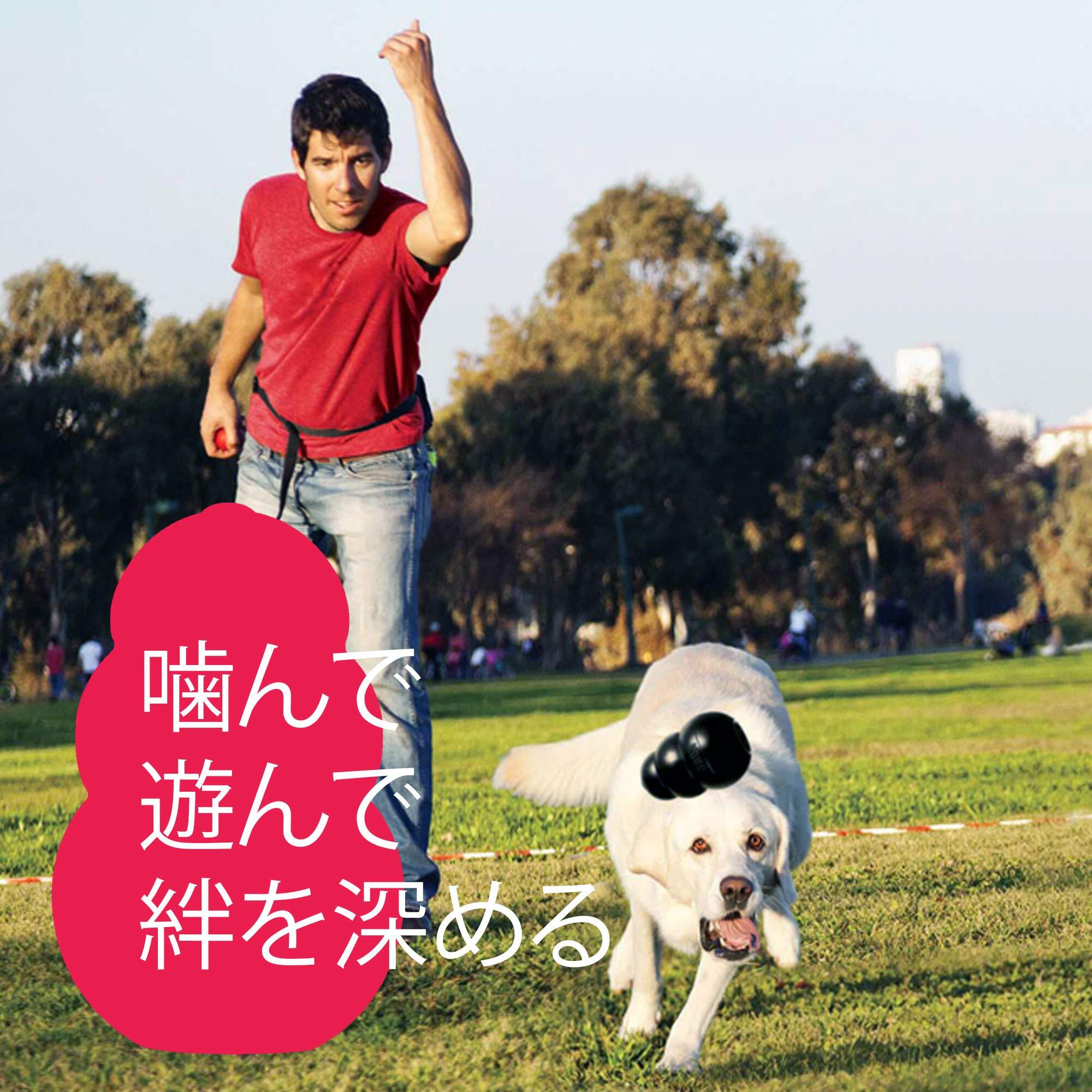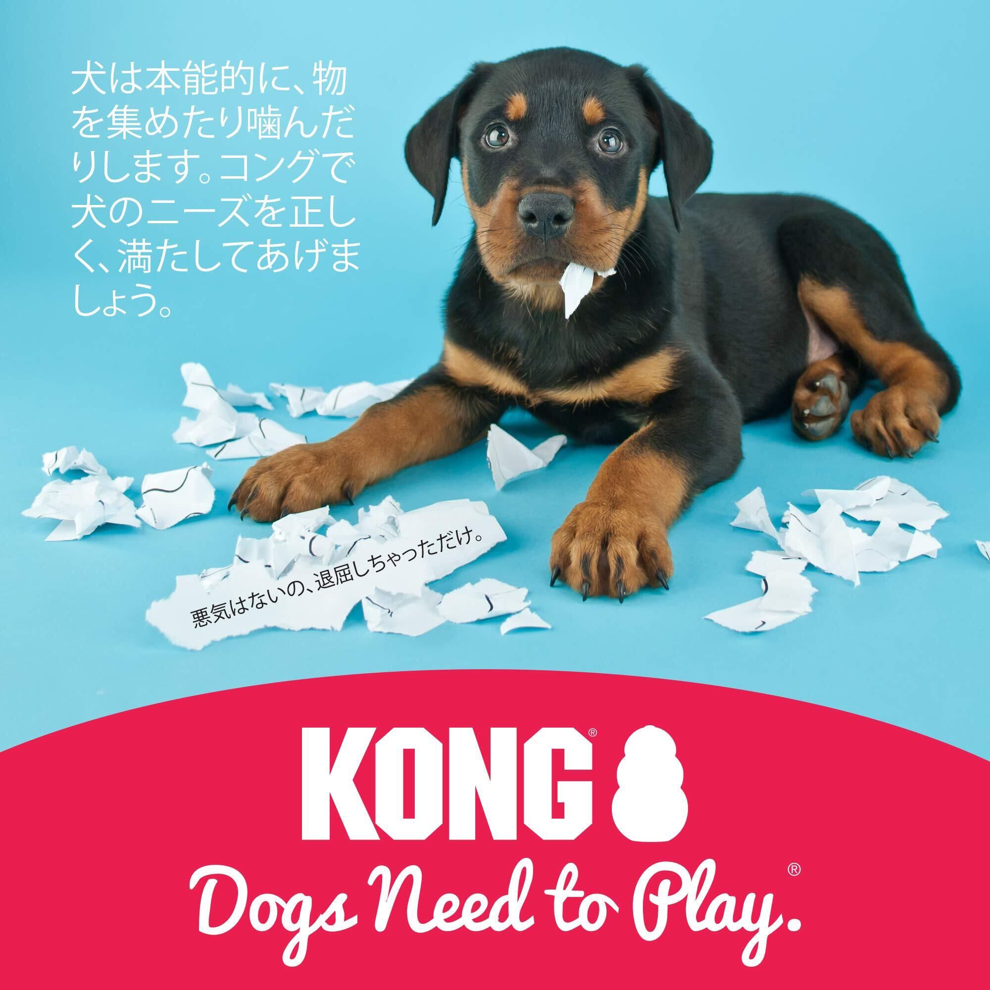 犬の自然なしつけや知育に役立つ、天然ゴム100%の丈夫でユニークな玩具。不規則な転がりやバウンド、かみ心地のよいユニークな形状。内側が空洞になっており、コング独自の凹凸に専用ペーストやフードを入れることで、犬が中身を取り出そうと夢中になります。子犬用に開発された乳歯に優しい固さのコングです。