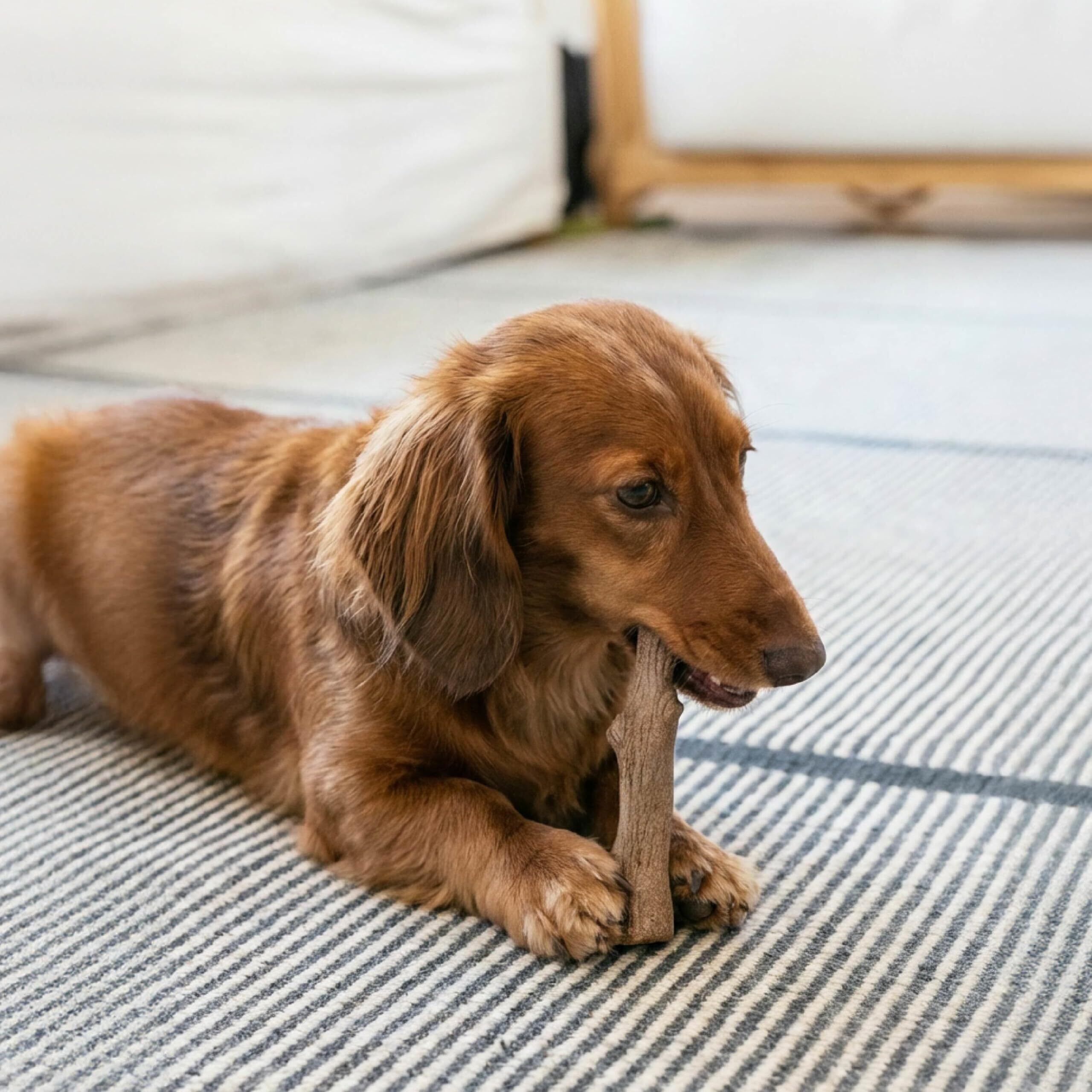 天然木チップを新技術で固めた、丈夫&安全なスティックです。噛んでも突起が出来にくく、徐々に細かく削れてささくれ立つことはありません。