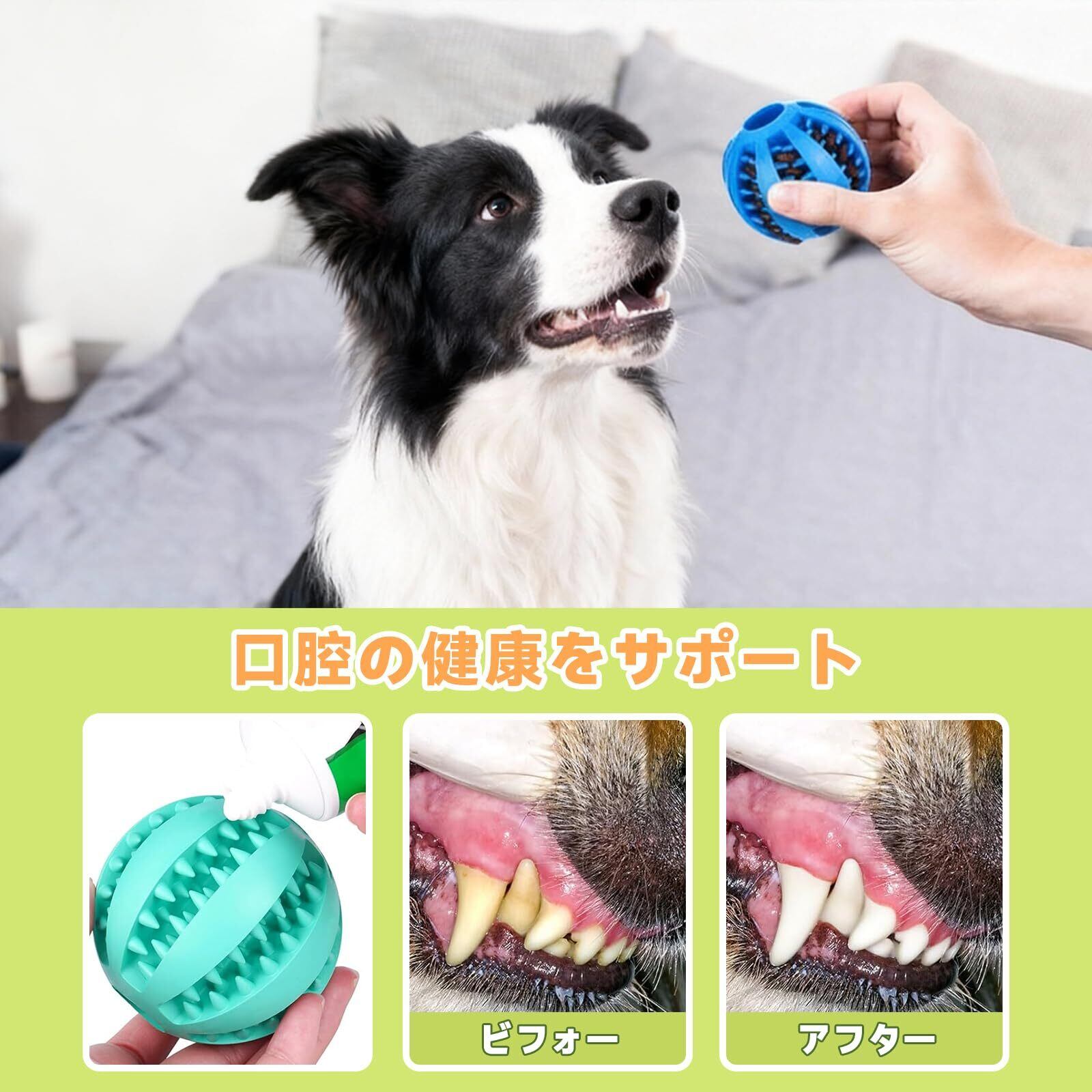 【丈夫で安全な素材 – 長く使える設計】耐摩耗性に優れた高品質素材を採用し、強く噛んでも壊れにくい設計。無毒・安全な素材なので、毎日安心して使用できます。お手入れは水洗いで簡単に清潔を保て、繰り返し使える経済的な犬用トレーニングボールです