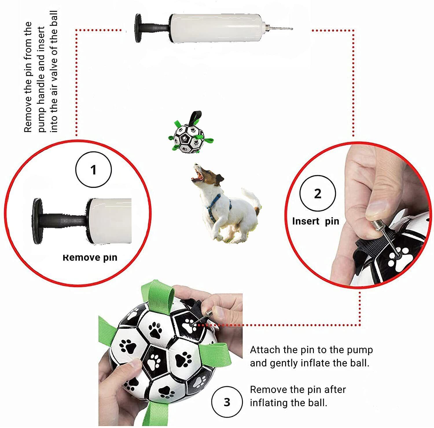 グラブタブ付きのドッグボールは水に浮きます。 ハンドインフレータポンプとボールニードルが付属しています。