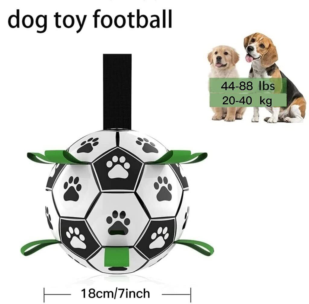 サイズは直径 7 インチ /18 cm で、犬のサッカーは小型および中型の品種専用であり、積極的な噛む人にはお勧めできません。