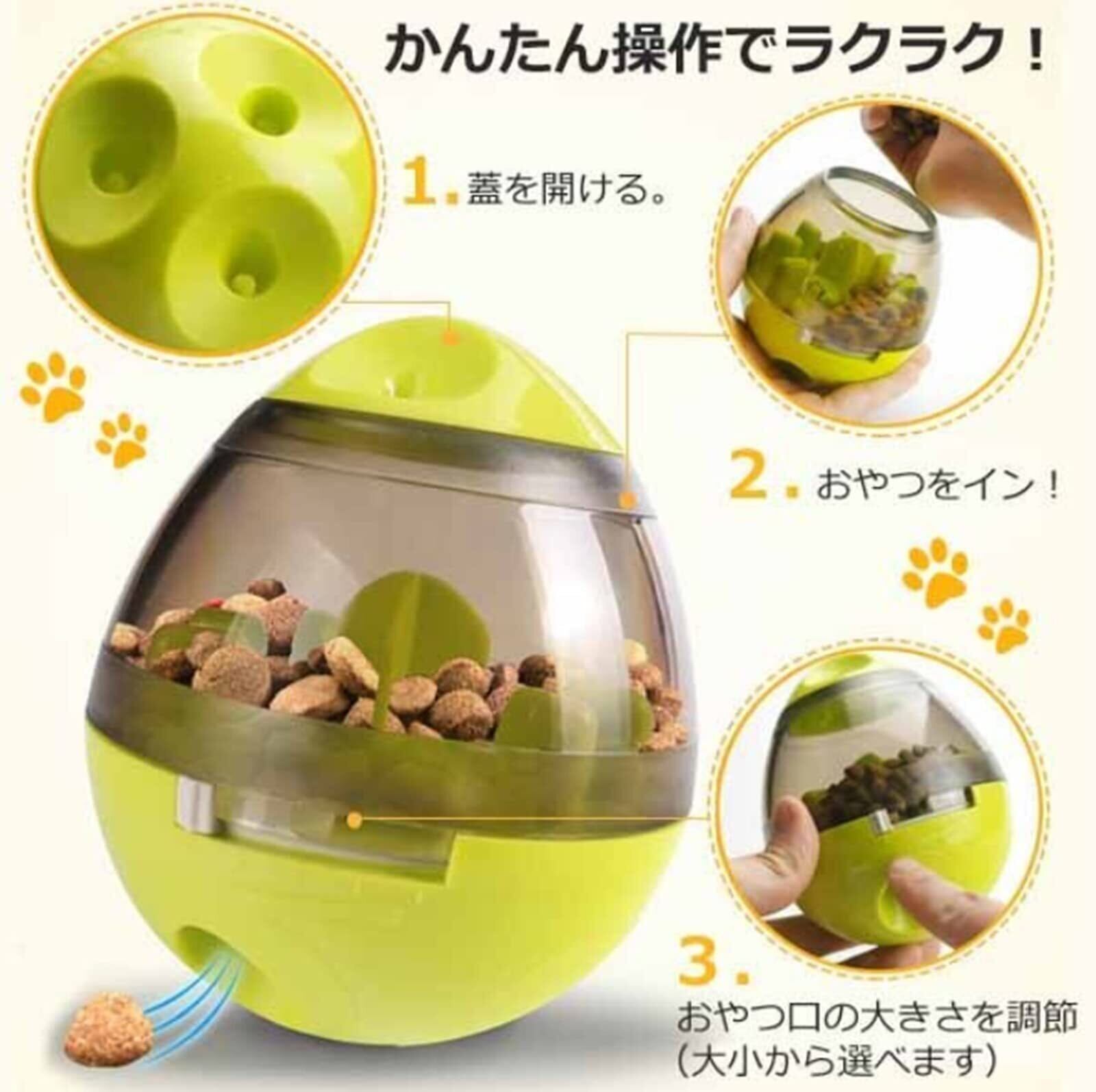 Panni 犬用 おもちゃ ペット 餌入れ知育玩具 おやつボール 倒れないエッグ 知育玩具 IQステップボール 運動不足の解消 ペットおもちゃ (グリーン)