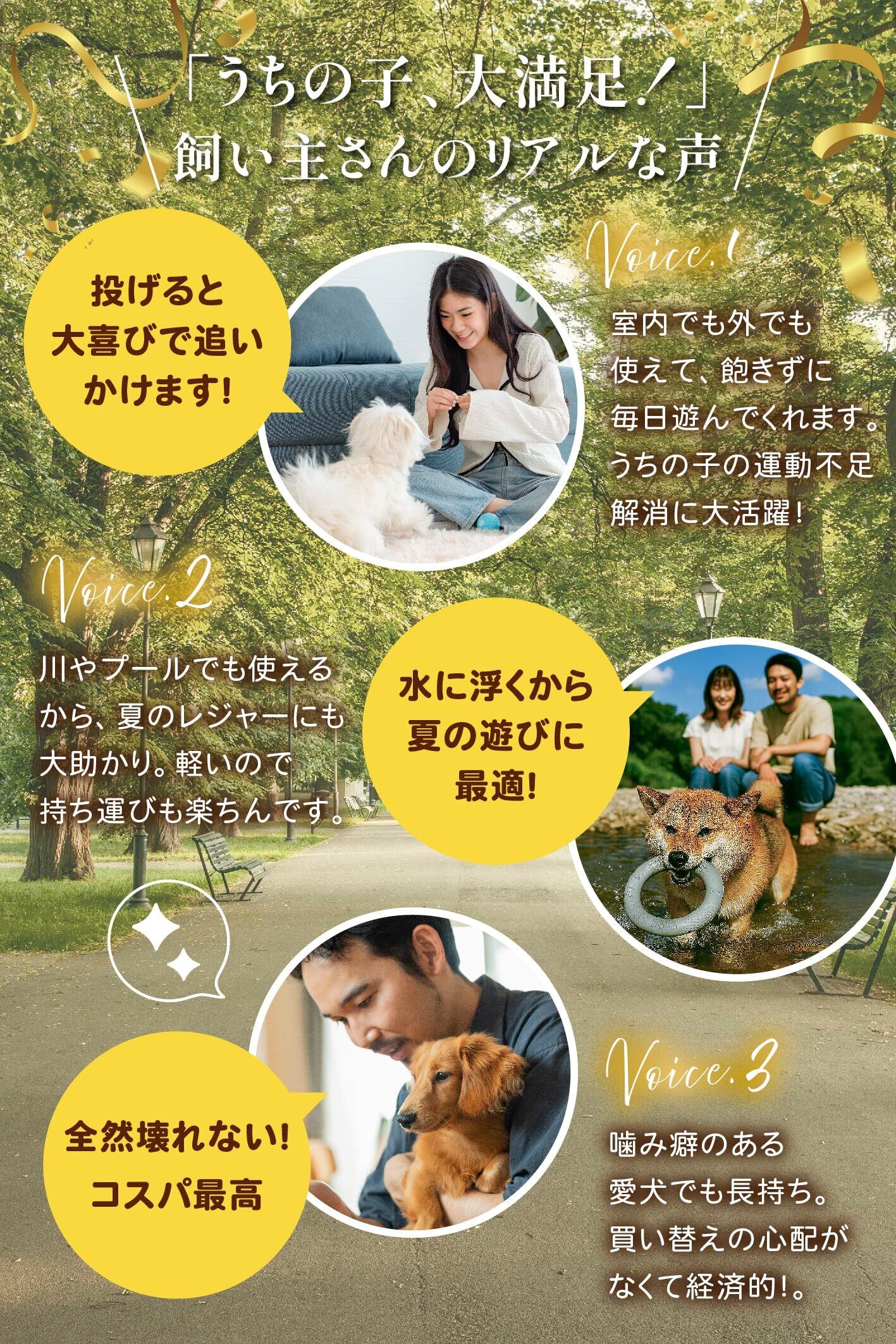 【運動不足の改善に】フリスビーとして使用でき、犬の首に掛けたり、噛んだりして遊ぶことができます。犬の活動を増やすことにより、不安やストレスを軽減できます。