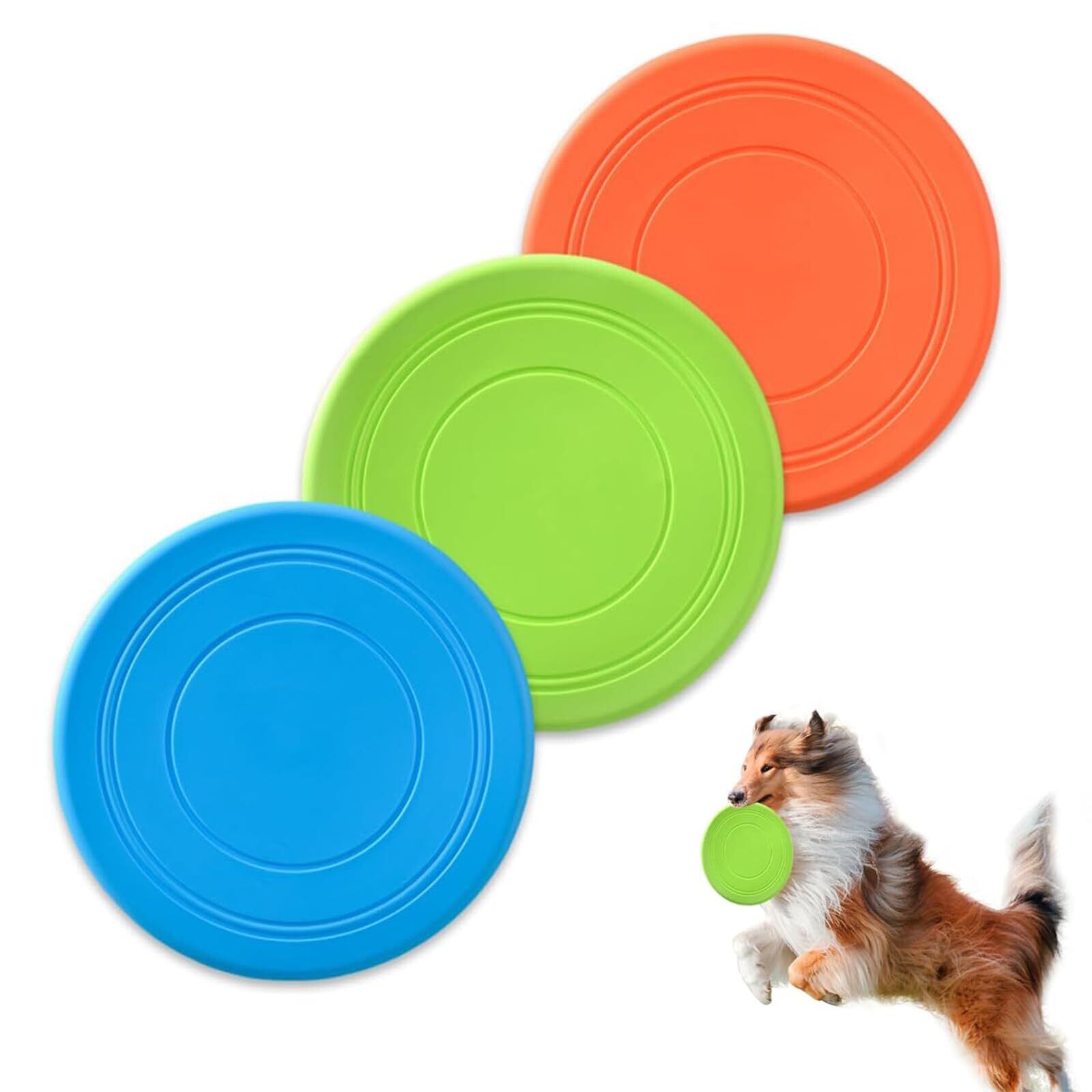 犬用フリスビー 投げるおもちゃ 3個セット シリコン製 フリスビー 歯に優 耐久設計 運動不足解消 知能訓練 (オレンジ/ブルー/グリーン)