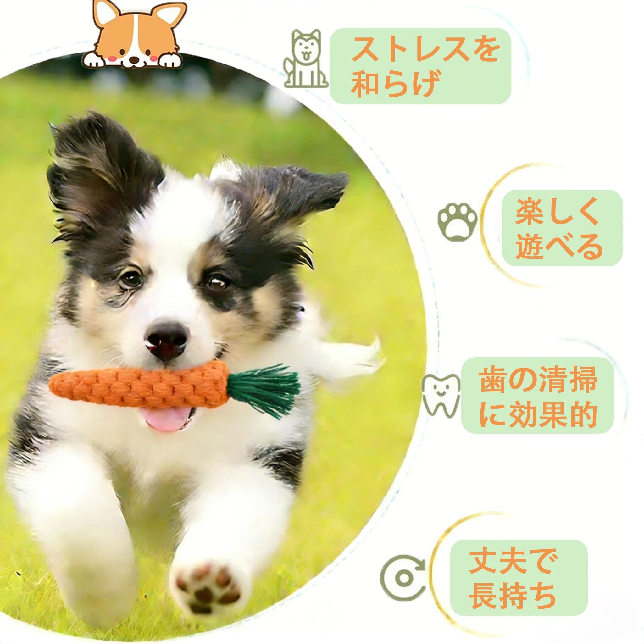 【天然素材100%・丈夫】愛犬の安全と地球環境に配慮したロープトイです。化学物質を含まない100%天然綿を使用し、子犬から成犬まで安心して与えられます。高密度に編み込まれた構造で耐久性に優れ、水洗いも可能なので清潔を保てます。軽量で携帯に便利なため、お家遊びはもちろん、お散歩やお出かけ、しつけのご褒美としても活躍します。
