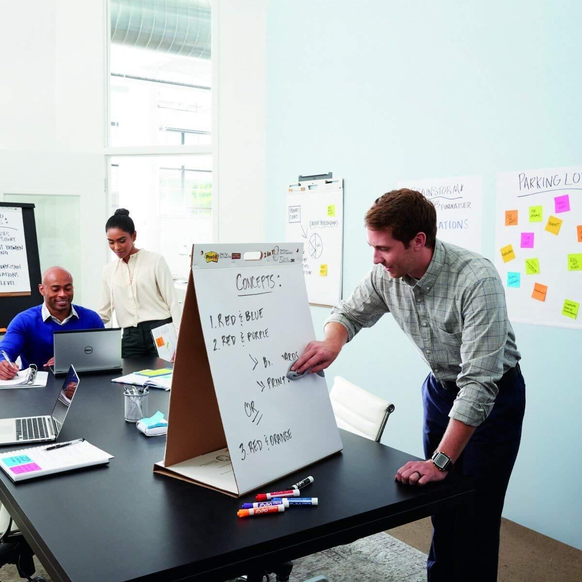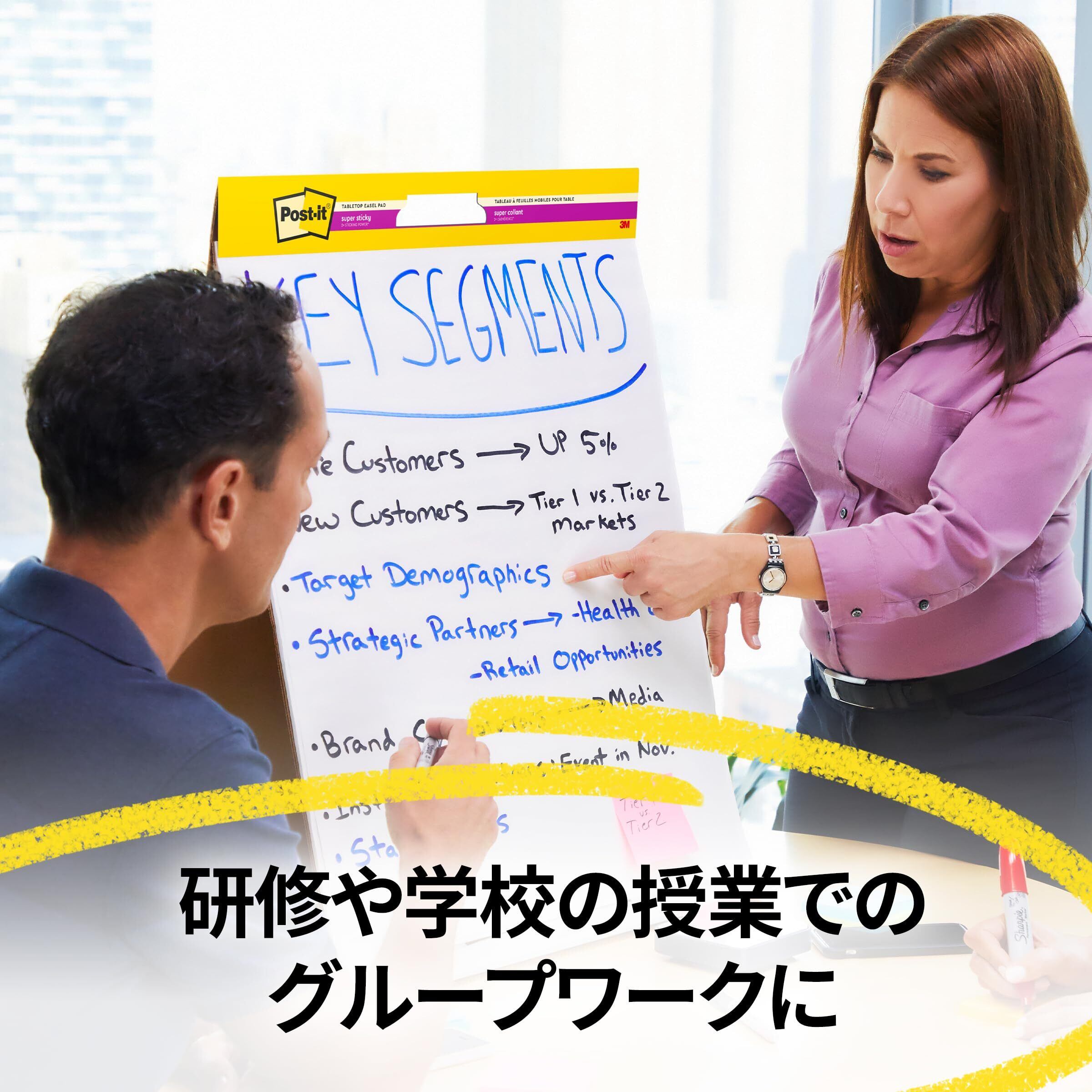 【巨大なポストイット 製品】イーゼルパッドは、模造紙のように大きな台紙付きパッドです。貼り付け面を傷めずに何度も貼りはがしができます。大きく書き込み、壁やボードなどに自由に掲示できます。
