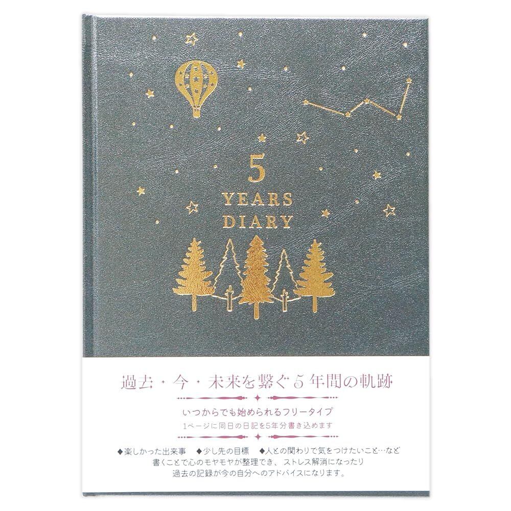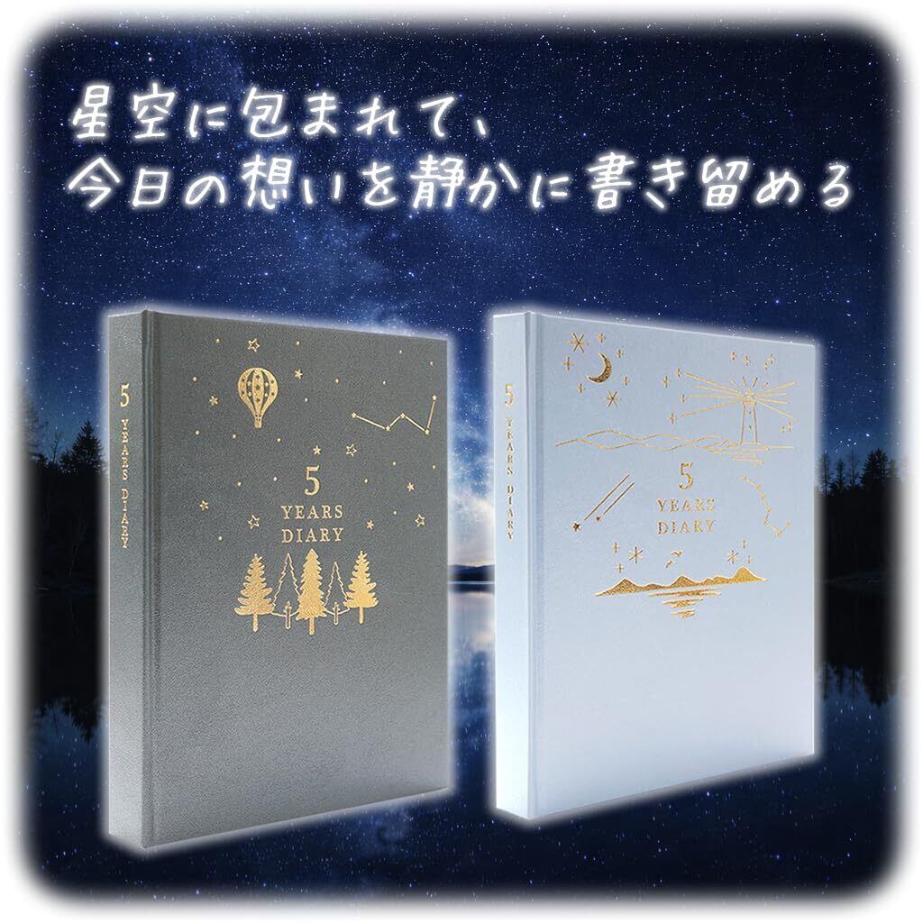 クローズピン 5年日記 A5サイズ 368ページ 星空デザイン 森と星空 ハードカバー 金箔加工 フリータイプ 日本製 DI-16686