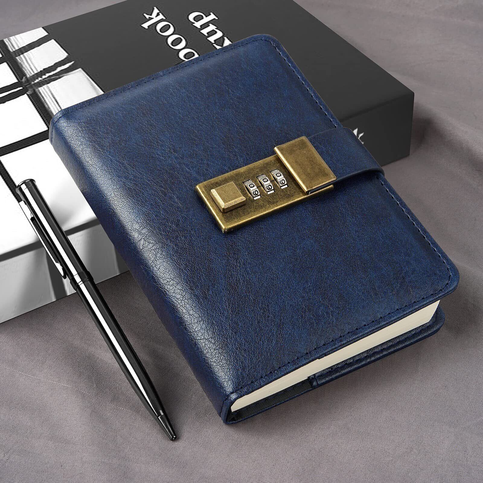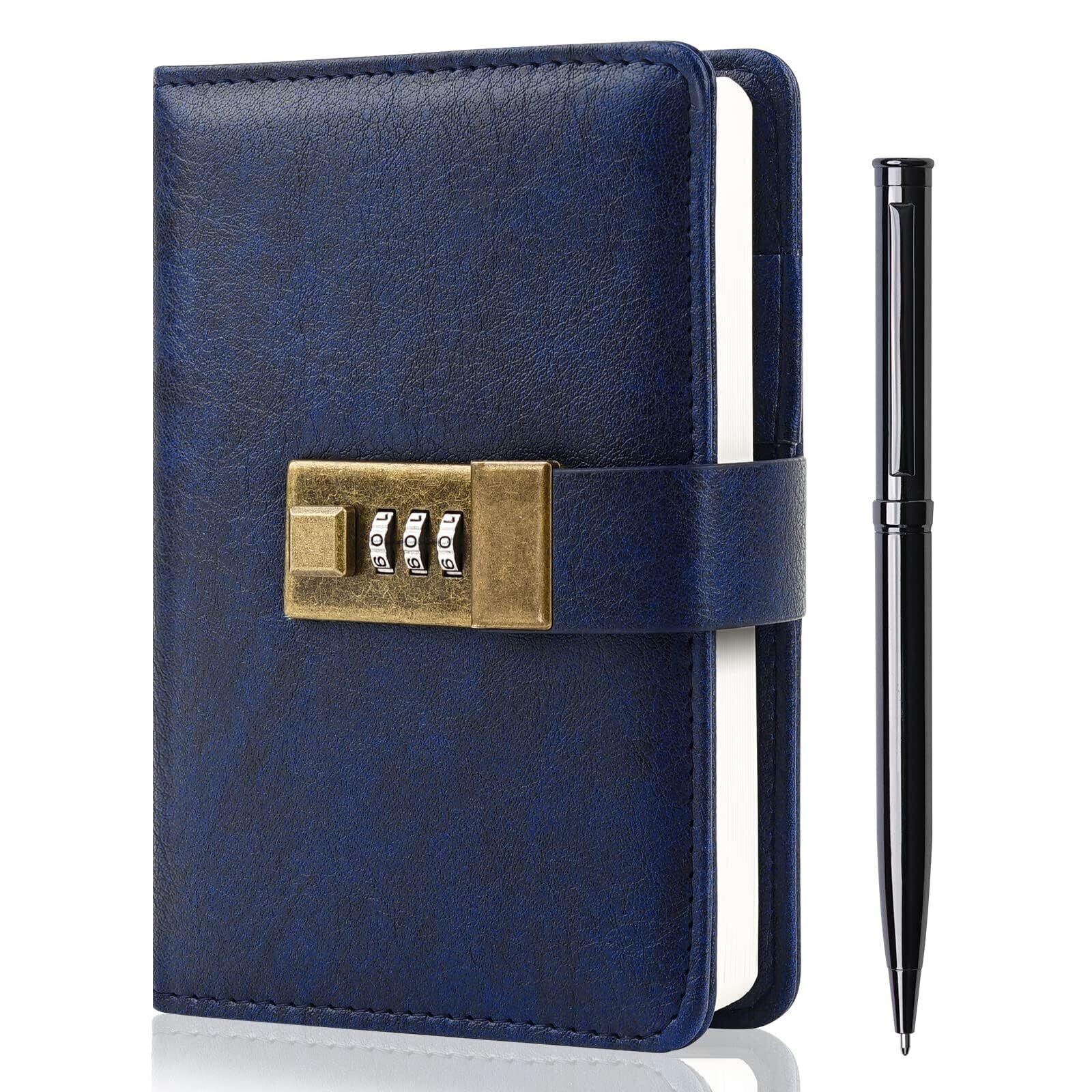WEMATE 日記帳 2026 A6 鍵付き ノート PUレザーペン&ギフトボックス付きパスワードノート 240ページ 15.8cmx11.5cm ロック付きダイアリーは秘密を安全に保ちます ダークブルー