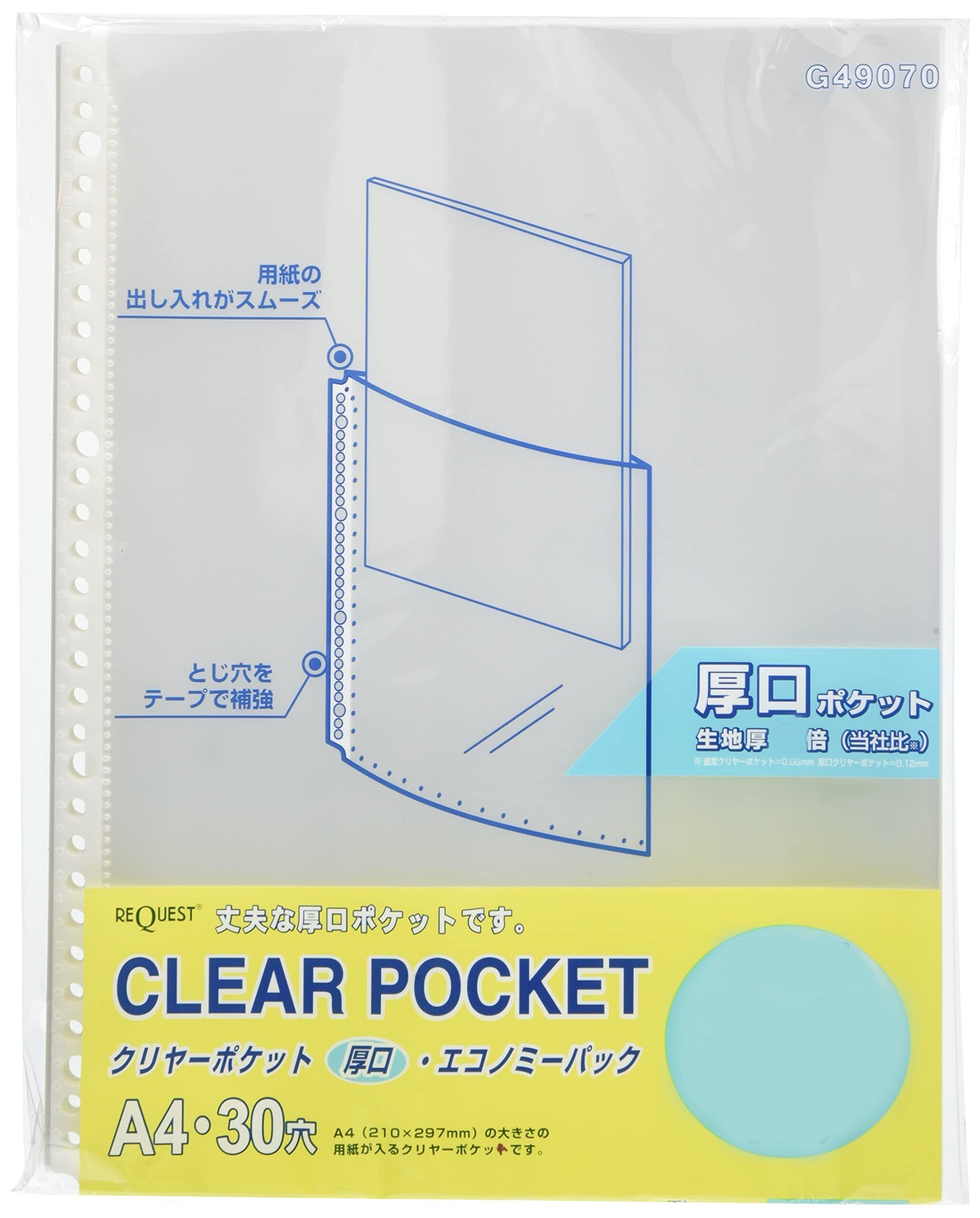 リヒトラブ クリヤーポケット 厚口タイプ A4 30穴 20枚入 G49070 透明