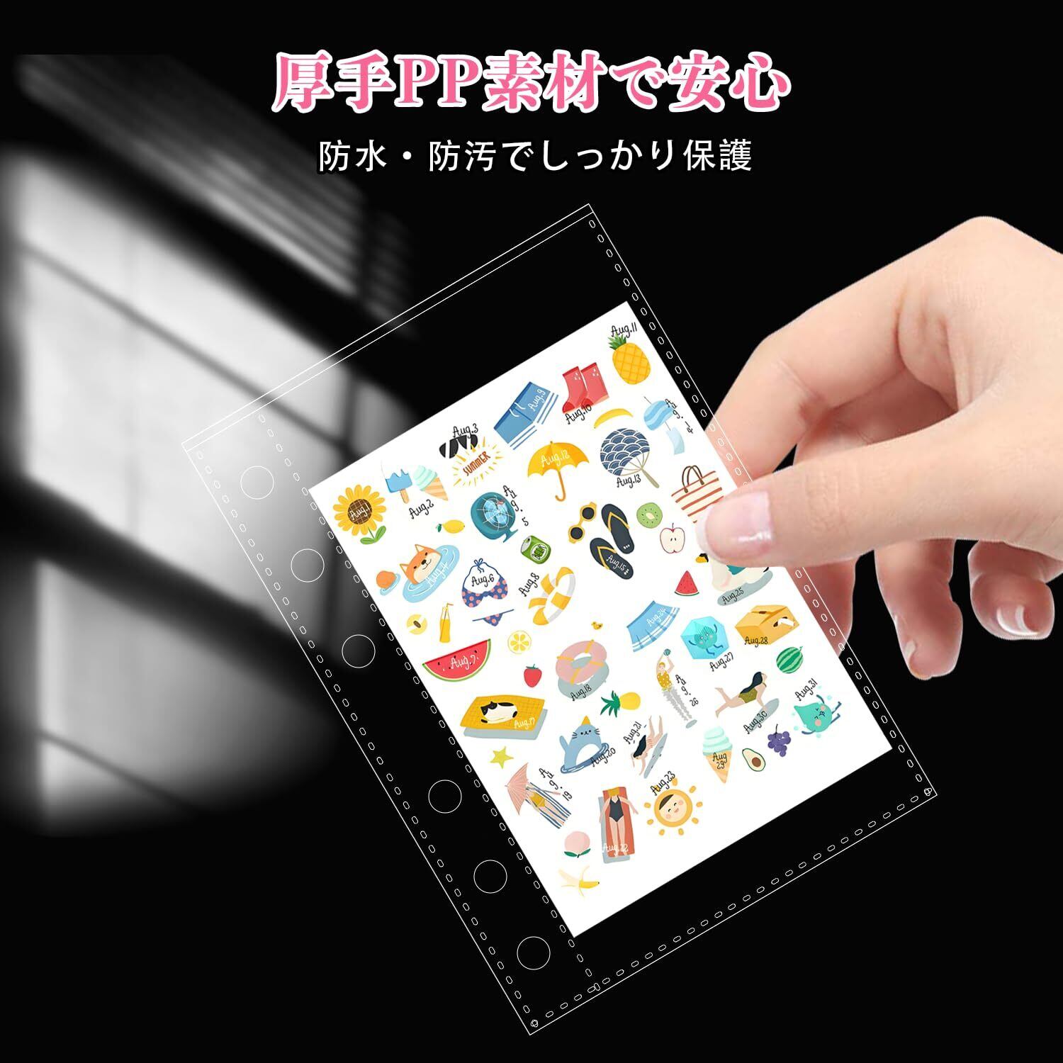 【厚みのあるPP素材でしっかり保護】素材には透明度の高いPPを採用。1枚0.2mm(片面0.1mm)のしっかりした厚みがあり、薄すぎず厚すぎない絶妙なバランスで、大切なシールをしっかり守ります。折れやすいシールや曲がりやすい台紙も安心。耐水性があるので、バッグに入れて持ち運んでも汚れにくく、長期間きれいな状態をキープできます