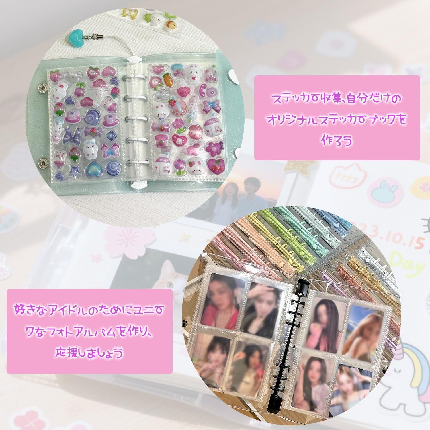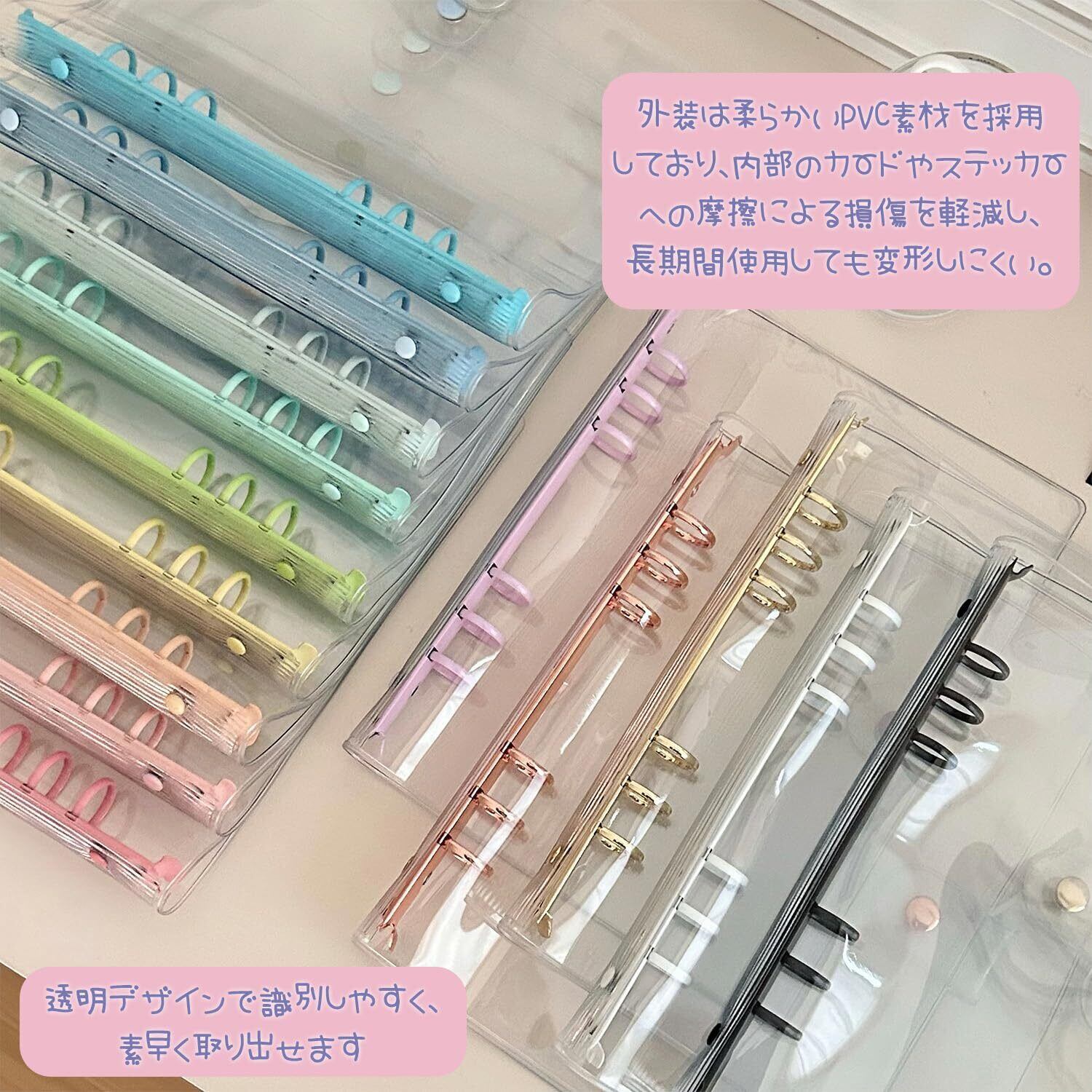 【PVC ソフトケース素材で、安全かつ耐久性あり】ケースは柔らかい PVC 素材を使用しており、落下や摩擦による内部のカード・シールの損傷を軽減できます。無臭の安全素材を採用しているため、長期使用しても変形しにくく、シールや写真を安心して保存できます。