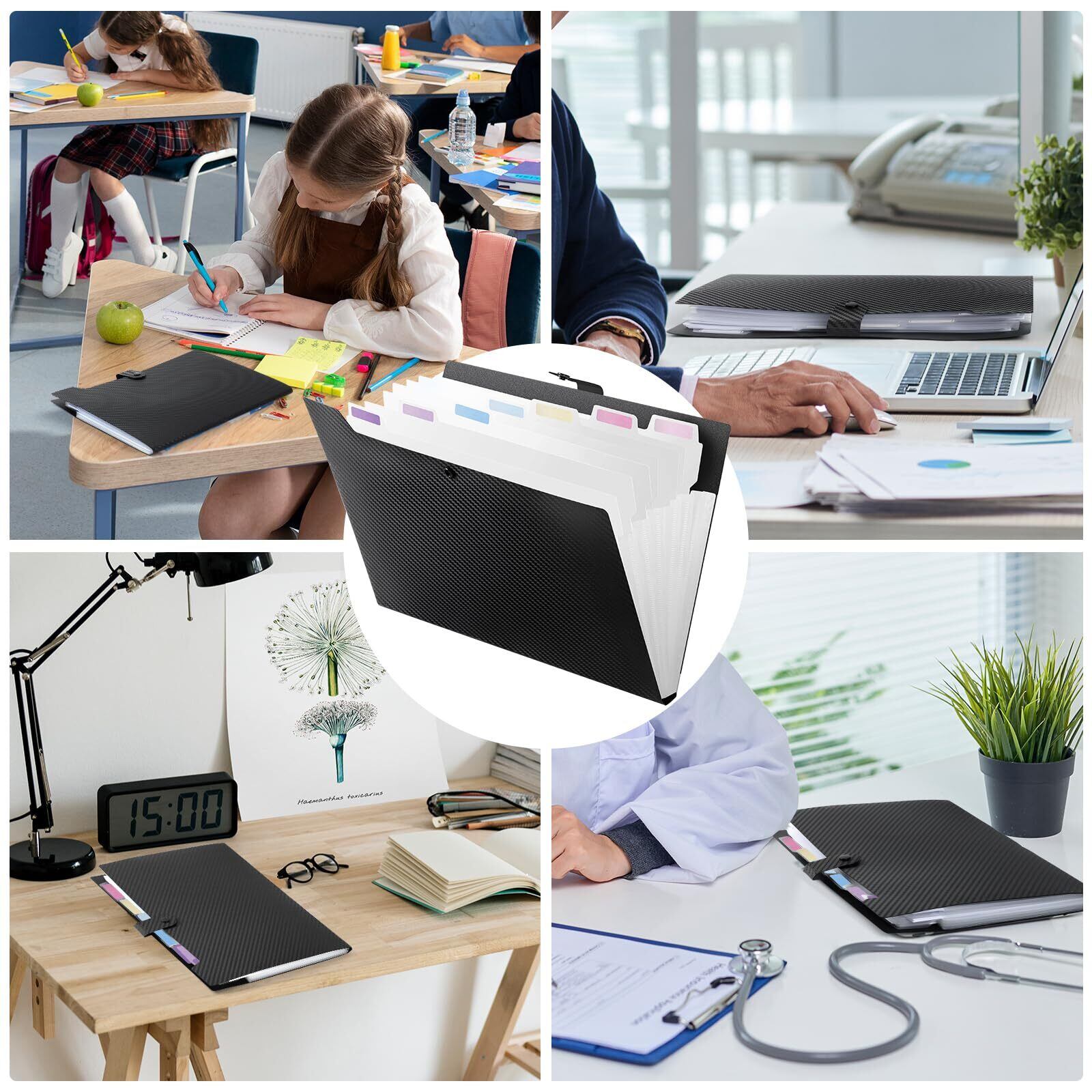 【シンプルな設計】シンプルで雰囲気のあるブラックの外観で、中の仕切りは純透明なので、ファイルの中身がよく見えます。開閉もボタンで簡単にできるので、散乱を防ぐ、ファイルの紛失を防ぐため。使いやすい、男性も女性も子供も気兼ねなく使えます。