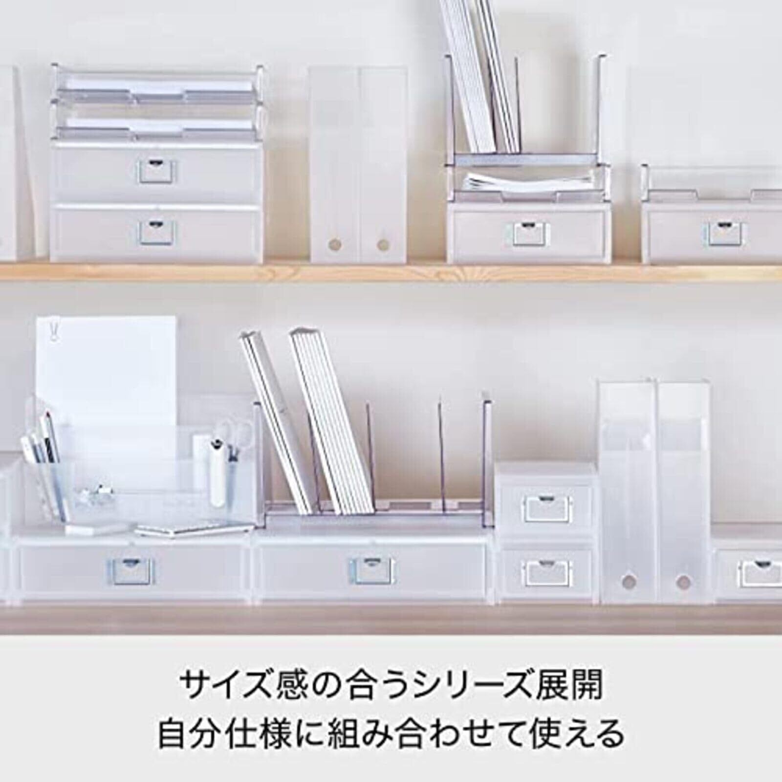 ステーショナリー収納に便利なMEDIXシリーズ。様々な機能を持ったモジュールアイテムを収納量に合わせ多段化したり組み合わせたりする事で、自分の目的通りの収納システムが構築できます。
