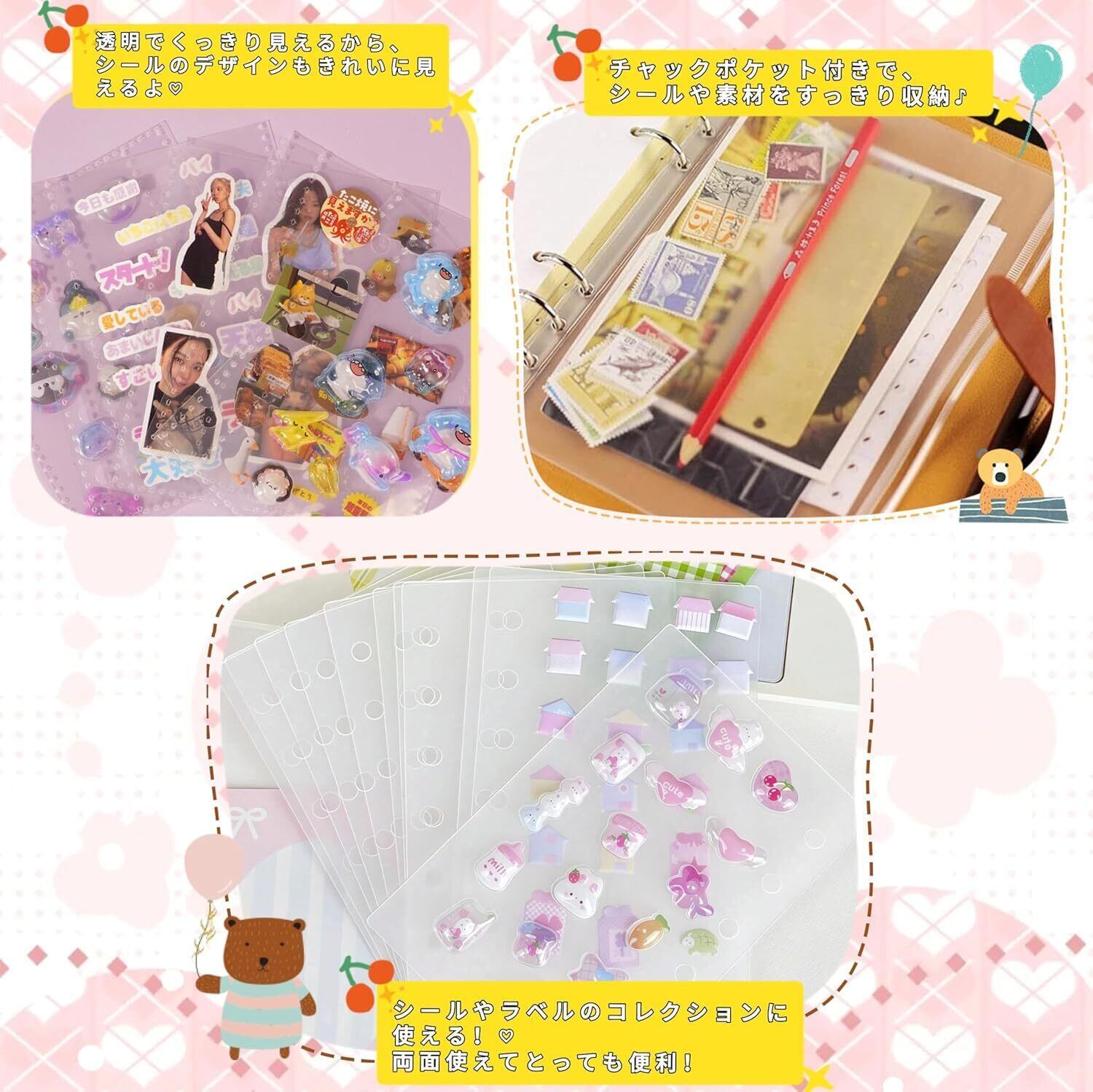 【便利な付属品で整理がもっと楽しく】 ①カードスリーブにはもちろん、立体シールやはがせるタイプのステッカーもぴったり収納。 お気に入りのシールを貼ってコレクションするのも◎。②下敷きはサラサラとした質感で、シールがベタつかずスルッと剥がせる仕様。文字を書く時もガタつかず、ペンがなめらかに走ります✒️③チャック付きポケットには、プリクラ・小物・ピンセット・ミニはさみなどのデコ素材をスッキリ収納。領収書やレシートの保管にも使えて、とっても便利!文房具や推し活アイテムをおしゃれにまとめられる、機能性抜群のシールバインダーです✨