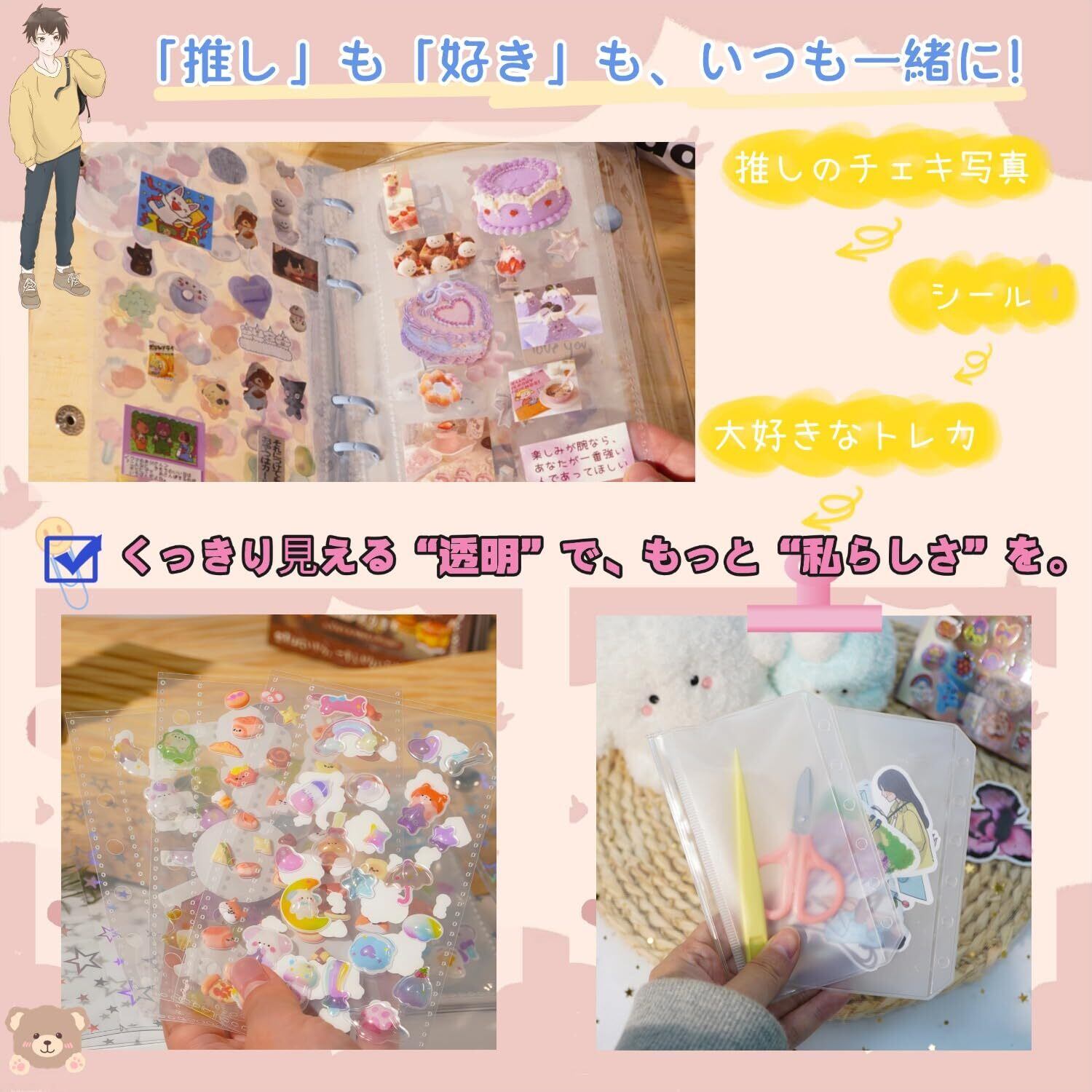 【自由にカスタマイズできる6穴バインダー式】 キラキラの金属製6穴リングで、リフィルの追加や交換がとっても簡単 サッと開け閉めできるから、気分やシールに合わせていつでもオリジナルなアルバムを作れます。 シールだけでなく、トレカやチェキも整理できる万能タイプ。 あなたの“好き”をたっぷり詰め込める、世界にひとつだけのシール帳を楽しもう ✨