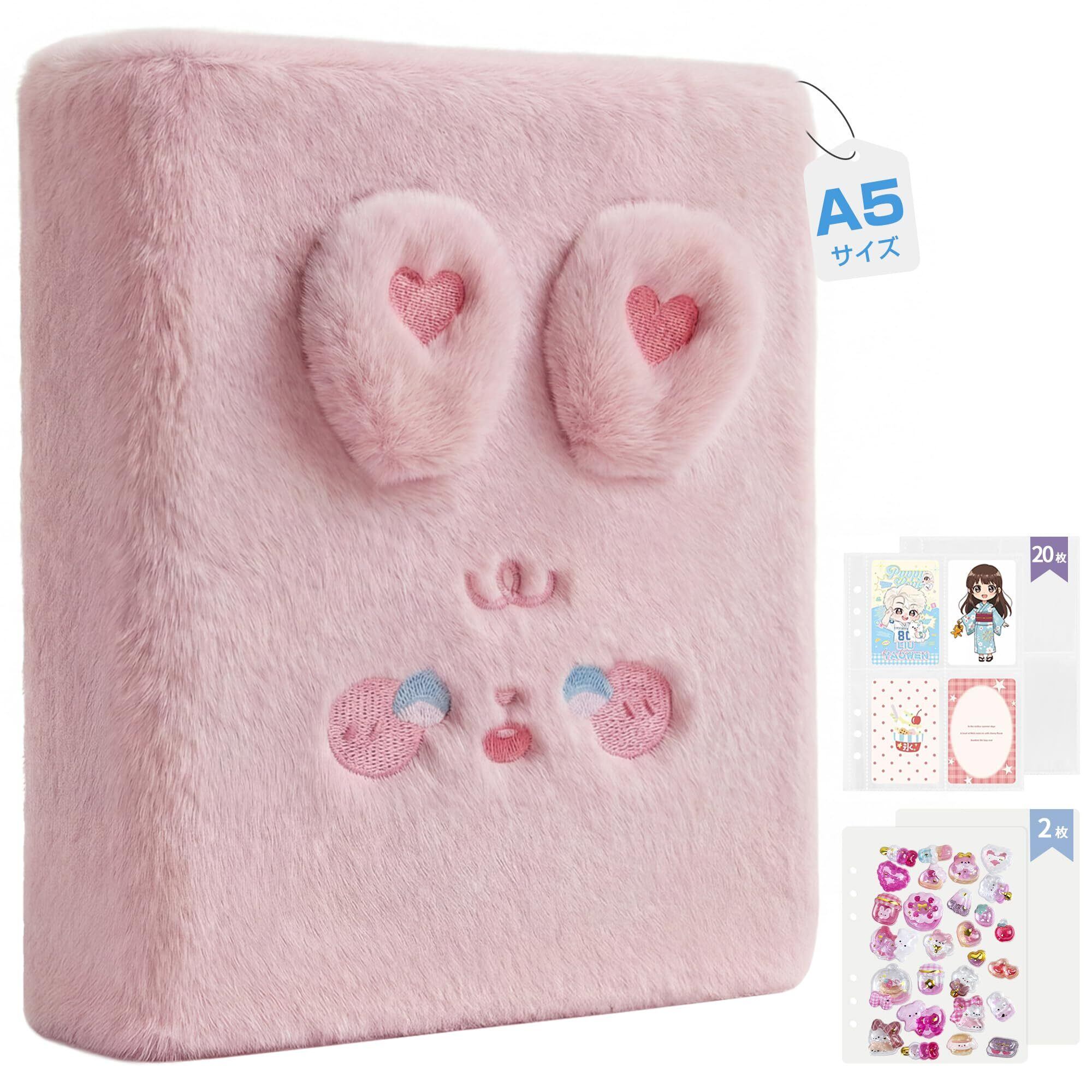 シール帳 A5 ふわふわ 可愛い 推し活 軽量 シール 手帳 【バインダー×1個 リフィル×20枚 下敷き×2枚】 PPシート カードポケット台紙 動物デザイン 女の子 カードスリーブ メモ帳 ノートブック アルバム