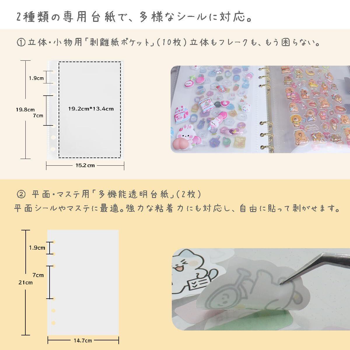 どんなシールも、迷わず整理。 剥離シート台紙とはがせる台紙ポケットの2種類リフィルで、立体・フレーク・マステまで対応。