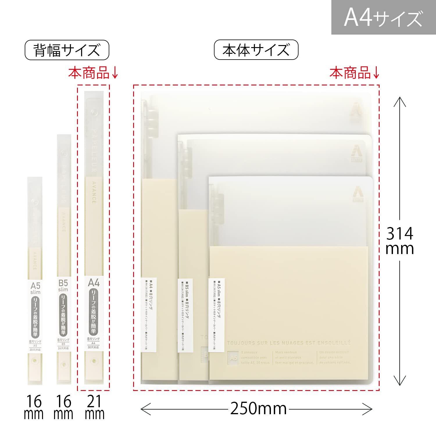 【本体サイズ】A4判用(W250×H314mm)