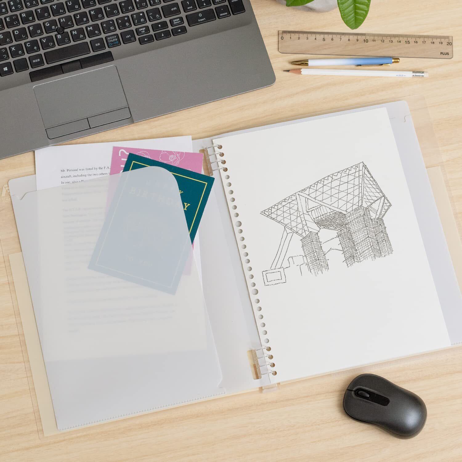 くすみカラーを透け感のある表紙素材に取り込み、かろやかなバインダーが仕上がり。