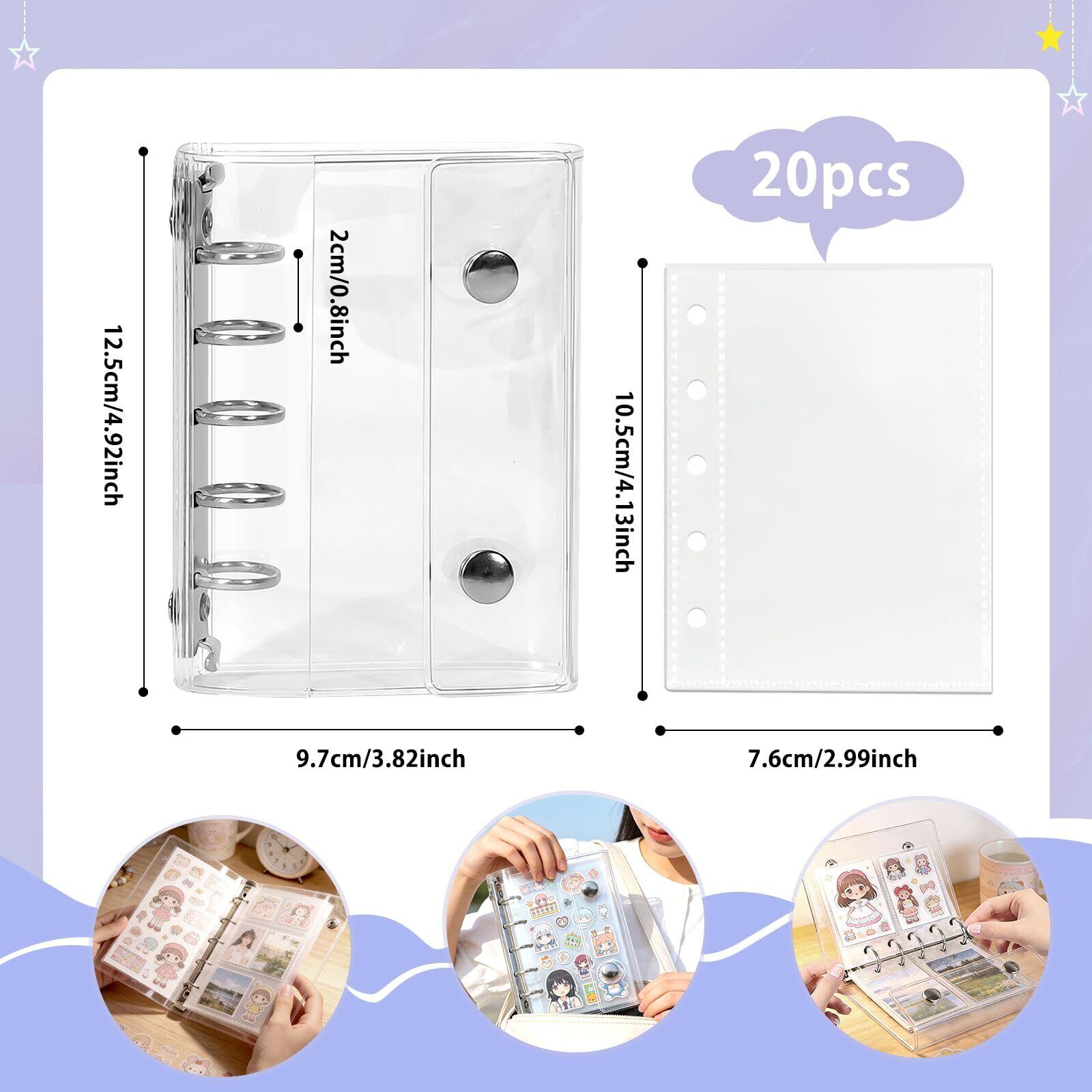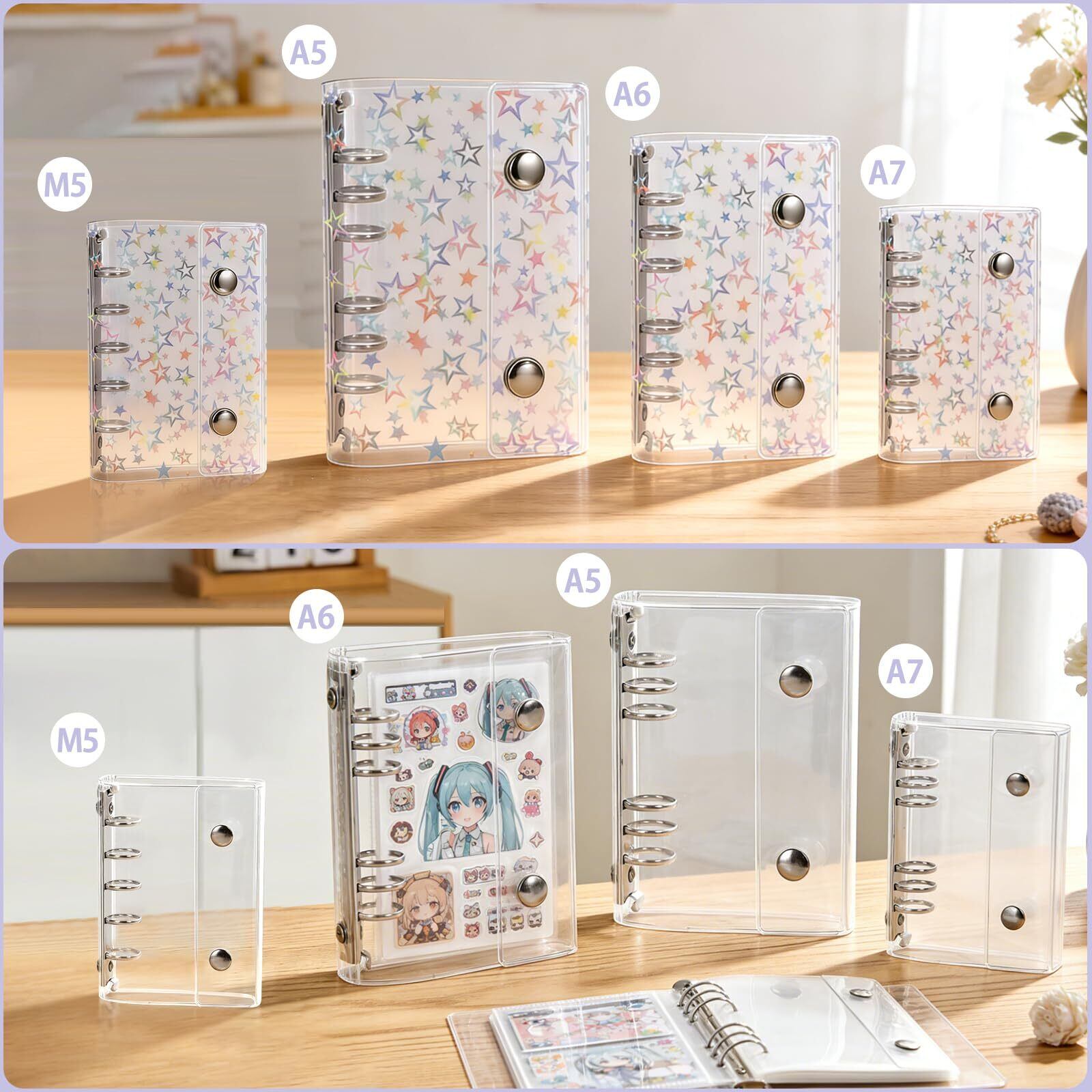 シール帳 ソフトカバーバインダー リフィル20枚 カードポケット付き シール・カード整理用 コラージュノート 子ども用 収納ブック (星, M5)