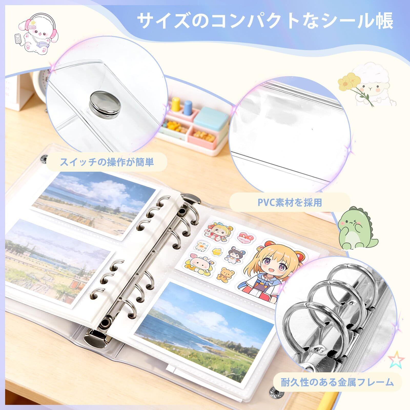 シール帳 ソフトカバーバインダー リフィル20枚 カードポケット付き シール・カード整理用 コラージュノート 子ども用 収納ブック