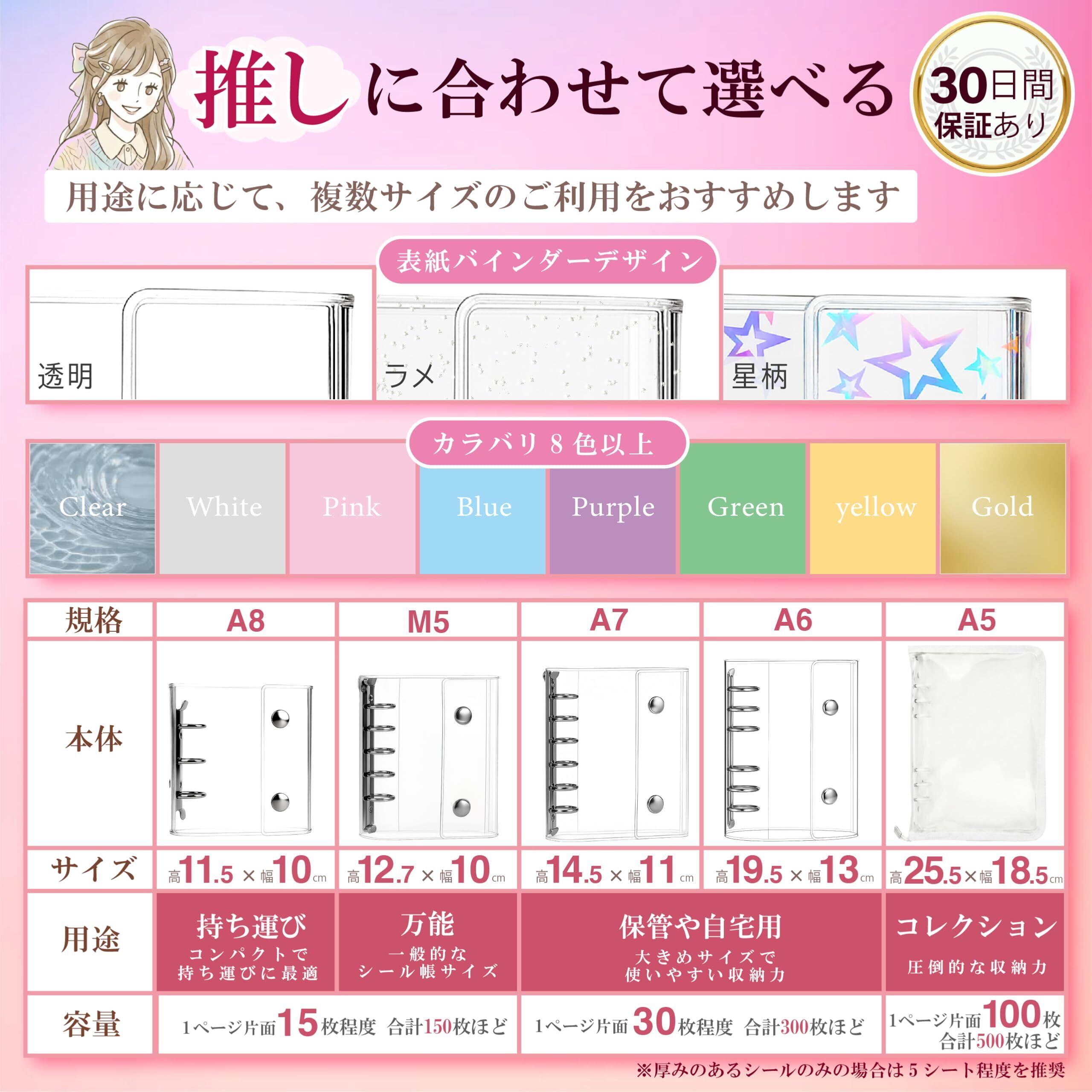 推しライフ シール帳 A5 ピンク 星柄 バインダー ボンボンドロップシール対応 シール台紙 10枚セット