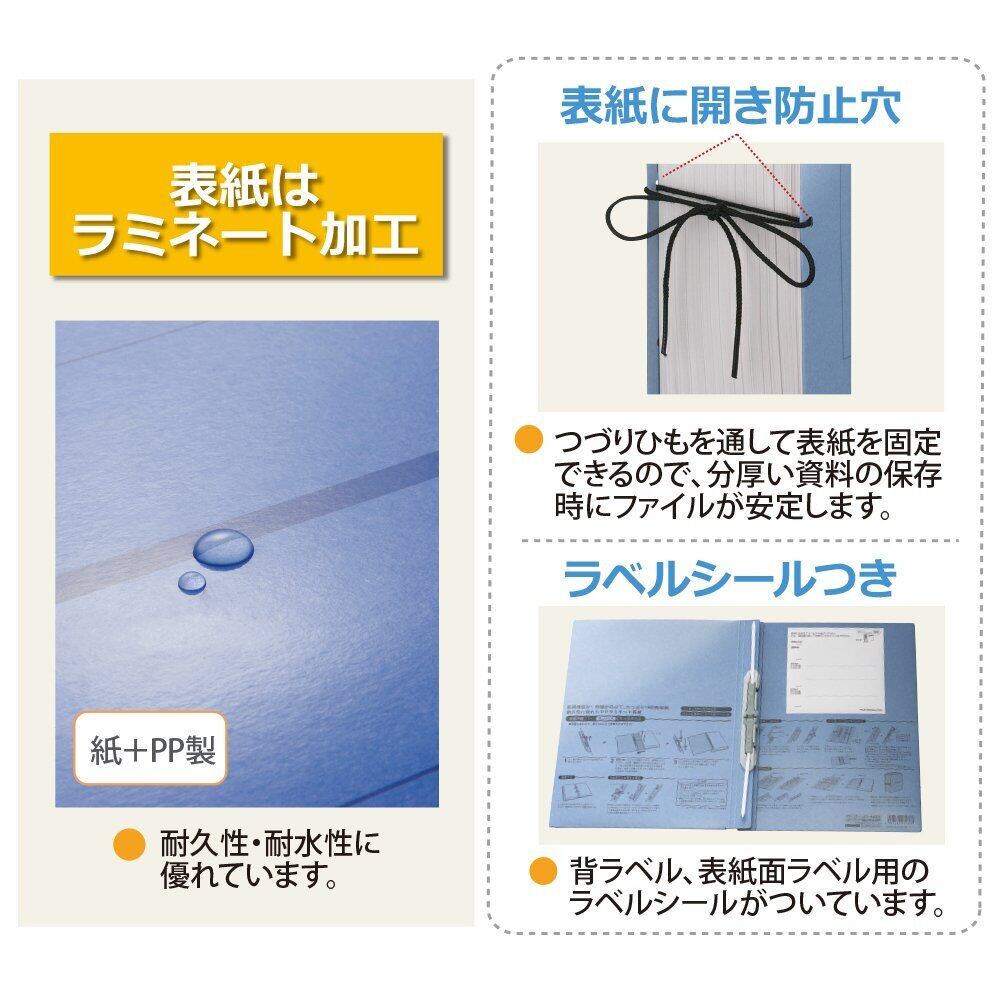 表紙:ファイルカード紙(古紙パルプ配合再生紙、PPフィルム貼り) / とじ具:80%再生ポリプロピレン(分別再利用タイプ)