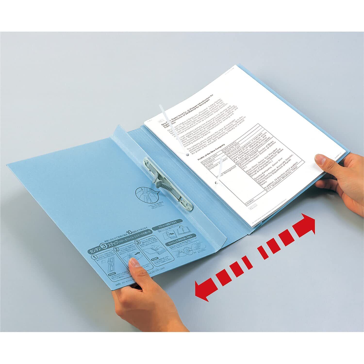 ワンタッチ操作のオリジナルとじ具を採用。簡単操作で書類の抜き差しがはかどります。