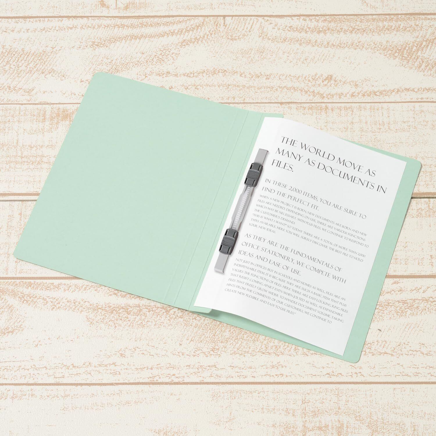 1.樹脂製とじ具を使用した紙ファイルのA5タテ型。最大180枚までとじられます。
