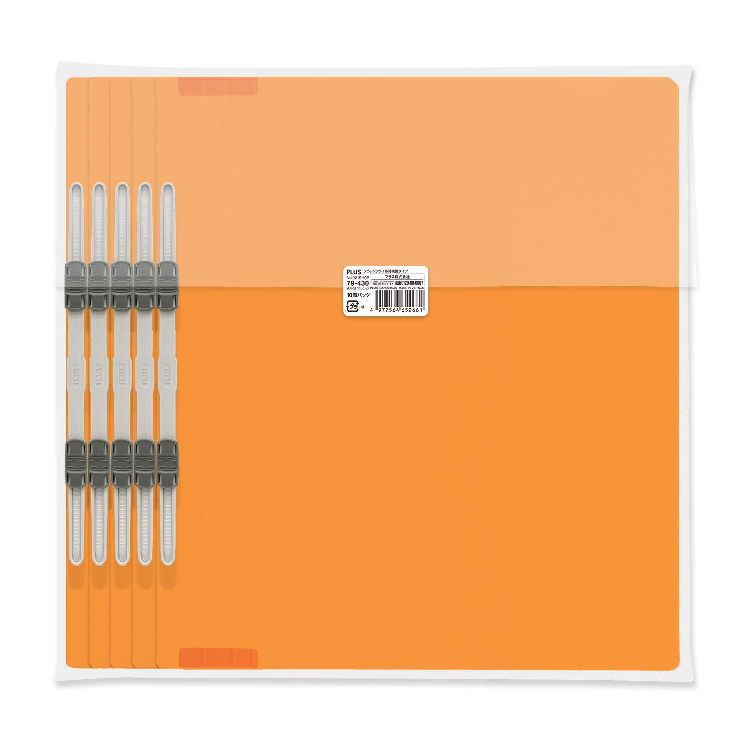 プラス 背補強フラットファイル A4縦 2穴 10冊 オレンジ No.021S 79-430